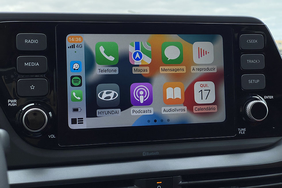 Este é mesmo um dos melhores trunfos do Hyundai i20. É que, por cerca de 18 mil euros, já podemos contar com a presença de um sistema de ar condicionado automático, com um painel de instrumentos totalmente digital e com um monitor tátil de oito polegadas que inclui a possibilidade de se ligar aos smartphones através de Apple CarPlay ou Android Auto, sem a necessidade de usar um cabo para o fazer. E depois, há também a camara traseira de ajuda ao estacionamento, os respetivos sensores, vidros e espelhos elétricos, comandos no volante, cruise control, luzes de condução diurna em LED e jantes de liga leve de 17 polegadas e ainda uma enorme lista de equipamentos de segurança ativa, que deixam o Hyundai i20 numa posição muito confortável face aos seus rivais mais diretos. E tudo isto faz parte do equipamento de série da versão Style, deixando o único extra da unidade ensaiada no tom Dragon Red que decora a carroçaria, caso se adicionem cerca de 430 euros ao seu valor base.