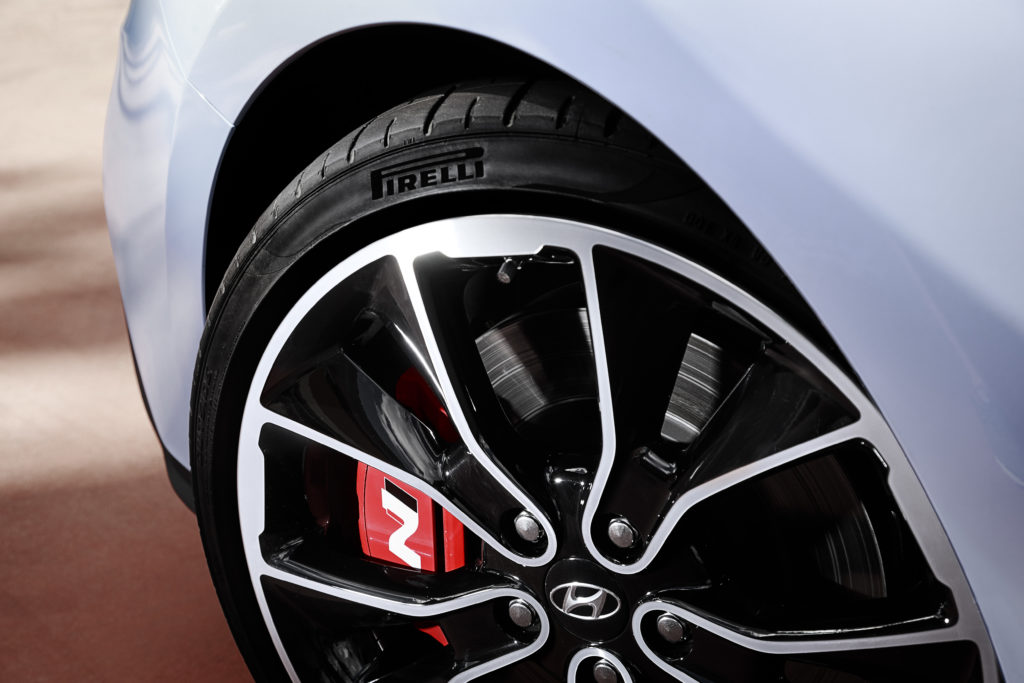 É a partir daí que motor, suspensão, Controlo Eletrónico de Estabilidade, Diferencial Eletrónico Autoblocante e até a direcção, passam a exibir a sua faceta mais desportiva, tornando o modelo sul-coreano uma verdadeira máquina de ritmos sôfregos e avassaladores, envolvidos em sonoros rateres sempre que operamos uma passagem de caixa, ao mesmo tempo que vamos sendo presenteados com sensações verdadeiramente arrebatadoras, viscerais até. E sem que isso signifique reacções incontroláveis ou prejudiciais para a estabilidade ou segurança – até porque o i30 N mostra-se uma verdadeira lapa na forma como se agarra ao asfalto, resultado não só das barras estabilizadoras e da barra anti-aproximação traseira, visível na bagageira, e que contribui para o reforço da rigidez do conjunto, mas também do excelente contributo dado pelos Pirelli PZero 235/35 R19. Eficazes, inclusivamente, naqueles momentos de arranque com o acelerador a fundo, tentando colocar à prova o Launch Control, em que a própria direcção nunca deixa de interpretar fielmente a posição das rodas no asfalto. Sendo que, em caso de necessidade, podemos contar com a eficácia de um sistema de travagem com discos de dimensões generosas, além de pinças de cor vermelha e com o emblema ‘N’ desenhado.