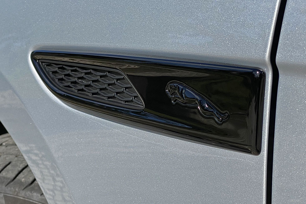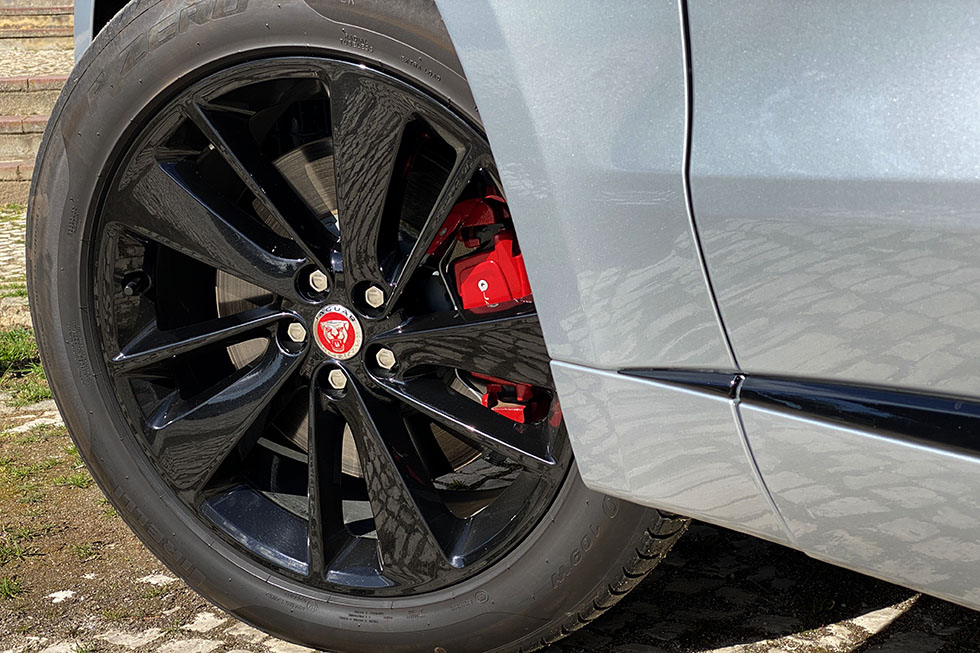 Com o nível de equipamento SE e o pacote de equipamento R-Dynamic, o Jaguar F-Pace fica desprovido de cromados e outros detalhes mais requintados, sendo todos eles elementos substituídos pelo tom preto brilhante na grelha dianteira, nas molduras das janelas, nos mais variados frisos e até nas letras que identificam a marca, o modelo e a versão desta unidade. Além disso, as jantes de 20 polegadas também recebem o mesmo tom escuro brilhante, deixando que tudo isto faça sobressair da melhor forma o tom cinzento escolhido para a carroçaria. Além disso, os ajustes estéticos mais recentes deste modelo nas óticas dianteiras e traseiras também o deixaram um pouco mais desportivo e tecnológico, o que melhorou bastante o visual de todo o conjunto.