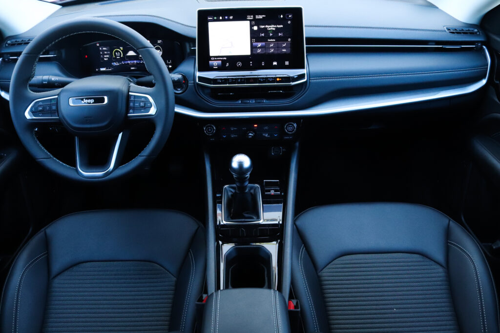 Interior (8/10) Se por fora o Jeep Compass mudou pouco, o mesmo não se pode dizer do interior. Assim que nos sentamos no banco do condutor deparamo-nos com um painel instrumentos totalmente digital e personalizável com toda a informação necessária à condução disponível. Ao centro, o sistema de infotainment apresenta-se num ecrã, em posição elevada, que deu um “pulo” face ao pré-restyling. De facto, para além de menus bem “arrumados” tem também um grafismo mais moderno. Ainda assim, de referir que o seu funcionamento não é tão rápido como seria de esperar. Apesar da digitalização estar na ordem do dia, a Jeep decidiu manter os botões físicos em várias funcionalidades como é o caso dos comandos do ar condicionado que, curiosamente, também pode ser comandado no ecrã tátil, numa tentativa de agradar a “gregos e troianos”.