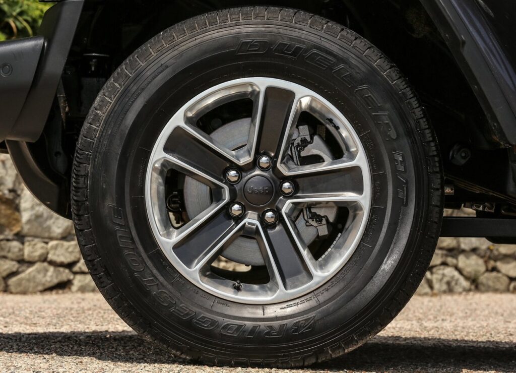 As versões Rubicon e Sahara não parecem, mas por baixo são muito diferentes. Sendo menos radical que o primeiro, o segundo tem eixos diferentes, suspensões com diferentes ancoramento e afinações, os eixos são diferentes e com relações, igualmente, diferentes e, crucialmente, os pneus são diferentes, com o Unlimited Sahara a receber uns Bridgestone Dueller da melhor qualidade, que se comportam bem em piso seco e, também, no molhado. E que diferença! Não só pelo chassis mais comprido e pela tal distância entre eixos com mais de 3 metros, o Wrangler Unlimited Sahara é mais estável e melhor comportado.