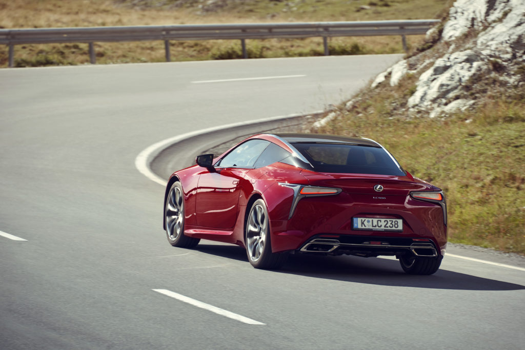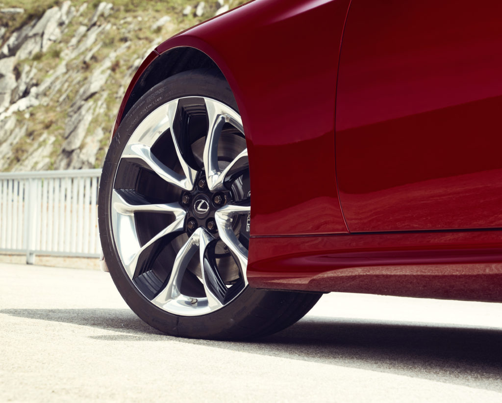 Aliás, a confirmar essa liberdade criativa, o facto do modelo traduzir fielmente a estética dada a conhecer com o concept que lhe está na base, o LF-LC. A começar naquela que tem vindo a tornar-se a grelha emblemática dos modelos Lexus, passando pelos personalizados e particularmente expressivos grupos ópticos (dianteios e traseiros), pelo perfil assumidamente coupé e materializado num corpo com quase cinco metros, para terminar nas enormes jantes de 21 polegadas, com pneus Michelin Pilot SuperSport 245/40 R21 à frente e 275/35 R21 atrás.