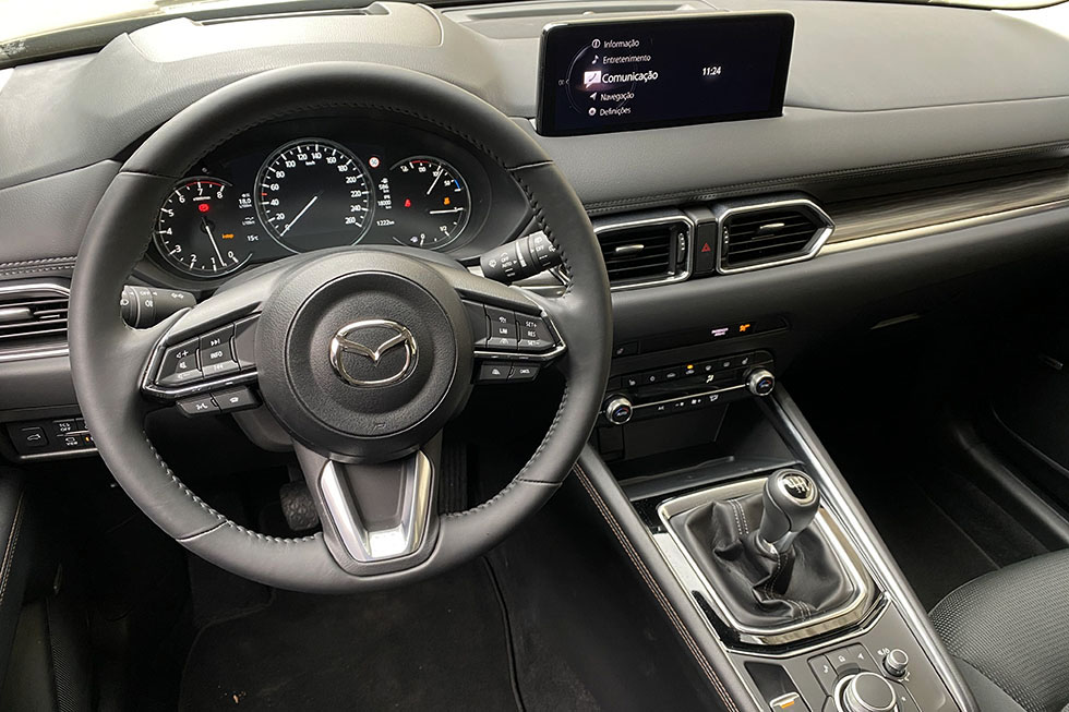A bordo do Mazda CX-5 há dois pontos que me ocorrem de imediato. O primeiro é que me começa a saber cada vez melhor quando encontro um carro de visual mais normal, sem monitores gigantes e comandos táteis. E o segundo é que fica sempre evidente o cuidado que a Mazda continua a ter com a ergonomia e os comandos destinados à condução. A posição ao volante é sempre excelente, seja num MX-5 ou num CX-5. E além disso, o espaço disponível também é bastante amplo, seja nos lugares da frente ou nos traseiros.
