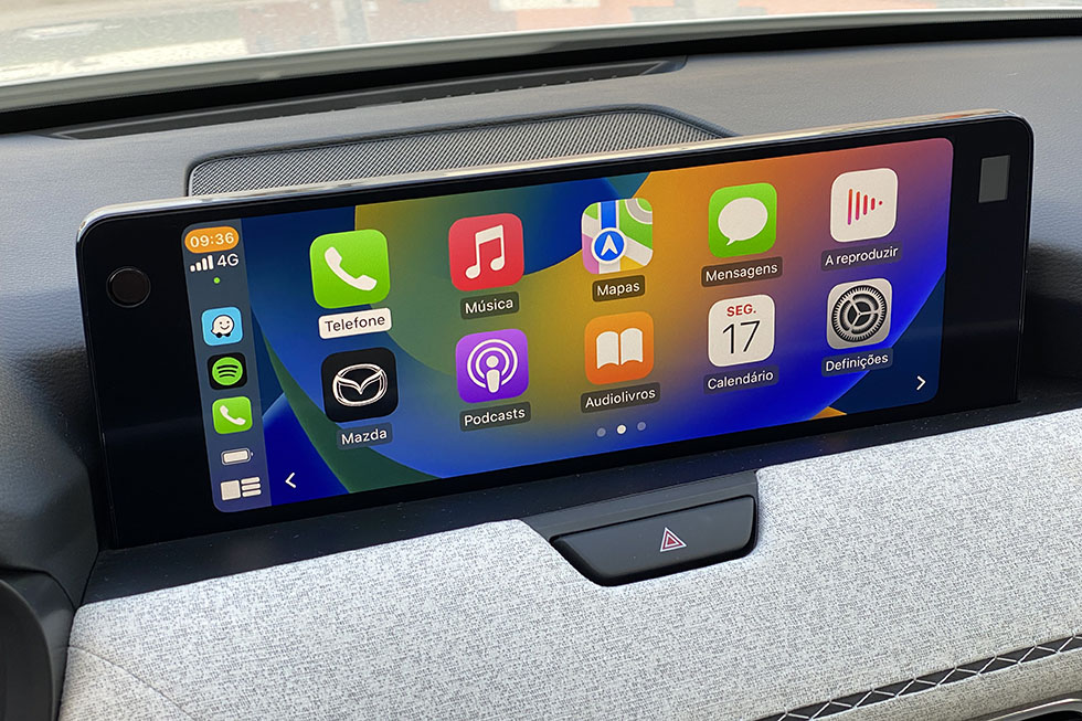 Com o patamar de equipamento Takumi, mas também com todos os pacotes disponíveis em opção presentes na unidade ensaiada, é difícil registarmos a falta de equipamento sem parecermos demasiado exigentes e começar a falar em coisas como massagens ou algo parecido. É que a bordo deste CX-60 há praticamente um pouco de tudo aquilo que realmente é necessário para o dia-a-dia, mas sem exageros. Está presente a chave inteligente que pode ficar sempre no bolso ou o sistema de iluminação em LED, mas também os assentos em pele, a navegação, o sistema de som da Bose ou a ligação para os smartphones através de Apple CarPlay ou Android Auto, sem fios. O único extra da unidade ensaiada, além dos quatro pacotes de equipamento já inseridos no valor da unidade ensaiada, era mesmo o novo tom Rhodium White para a carroçaria.