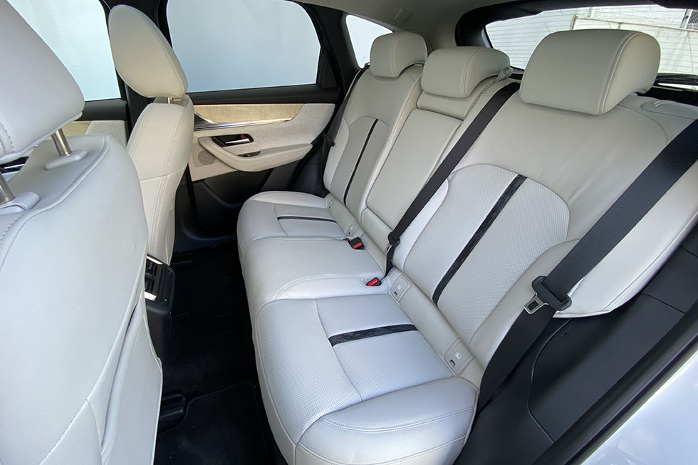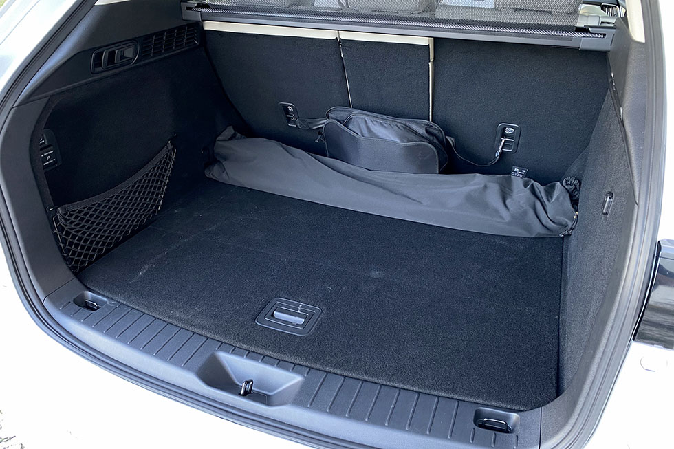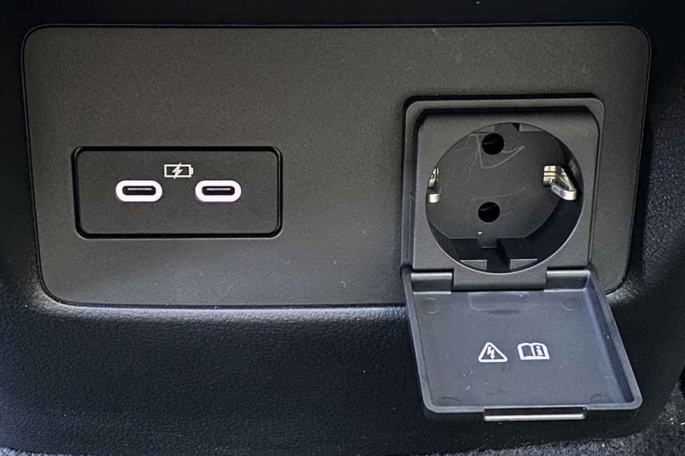 Além da posição de condução, um dos grandes trunfos a bordo do CX-60 é o espaço que disponibiliza para os seus cinco possíveis ocupantes. E mesmo com três pessoas na fila de assentos traseira, o lugar central continua a ser o menos confortável, mas as medidas de largura são compatíveis com os ombros mais volumosos e há ainda a possibilidade de regular as costas dos assentos traseiros para a posição que for mais confortável ou para a que liberta mais espaço na bagageira que já tem quase 600 litros de capacidade se contarmos com a zona que está por baixo do piso. E tanto nos lugares traseiros como na bagageira, nem sequer falta uma tomada de 220V, idêntica às que temos em casa.