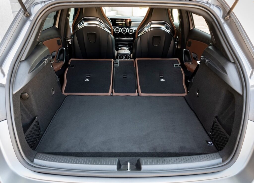 O estilo do Classe A continua a ser um excelente exercício de design e a AMG não estragou aquilo que a equipa de Gorden Wagener fez na segunda geração do Classe A. Claro que colocou a sua impressão digital na grelha dianteira Panamericana, nos para choques redesenhados com amplas entradas de ar, cavas das rodas alargadas, difusor traseiro, jantes de 19 polegadas, quatro saídas de escape de tamanho mais generoso, travões maiores e mais modos de condução. Tudo isto coisas que são aplicadas a este A 45S. Os pequenos “bigodes” no para choques dianteiro servem os dois modelos e ajudam na aerodinâmica, tal como a enorme asa traseira. Tecnicamente, por baixo da pele, a AMG reforçou o chassis com uma nova placa debaixo do motor, barras de anti aproximação das torres de suspensão, barras diagonais colocadas por baixo do carro para suportar os sub-chassis e ligações entre as cavas das rodas, as torres de suspensão e os pilares A, para evitar a deformação destas zonas durante a compressão da suspensão. Ou seja, tudo feito como se este fosse um carro de corridas.