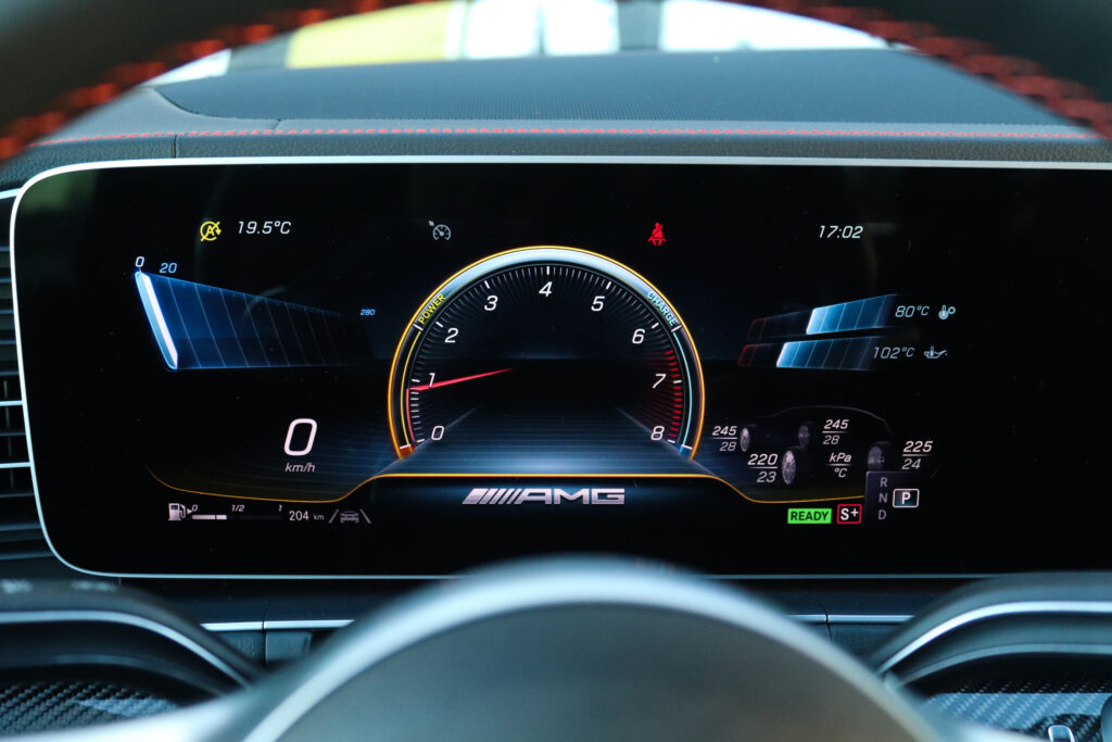 Relativamente a tecnologia, o Mercedes-AMG GLE 53 ainda adota uma configuração que conjuga o ecrã do painel de instrumentos e o ecrã central numa peça só, ao contrário do que acontece com os mais recentes modelos da marca, como por exemplo, no Classe C, onde o ecrã central passa a estar numa posição vertical e separado do painel de instrumentos. Apesar disso, continua a ser uma tecnologia bastante atual e fácil de utilizar, muito graças ao comando tátil localizado na consola central. Sendo AMG possui menus específicos dedicados à performance.