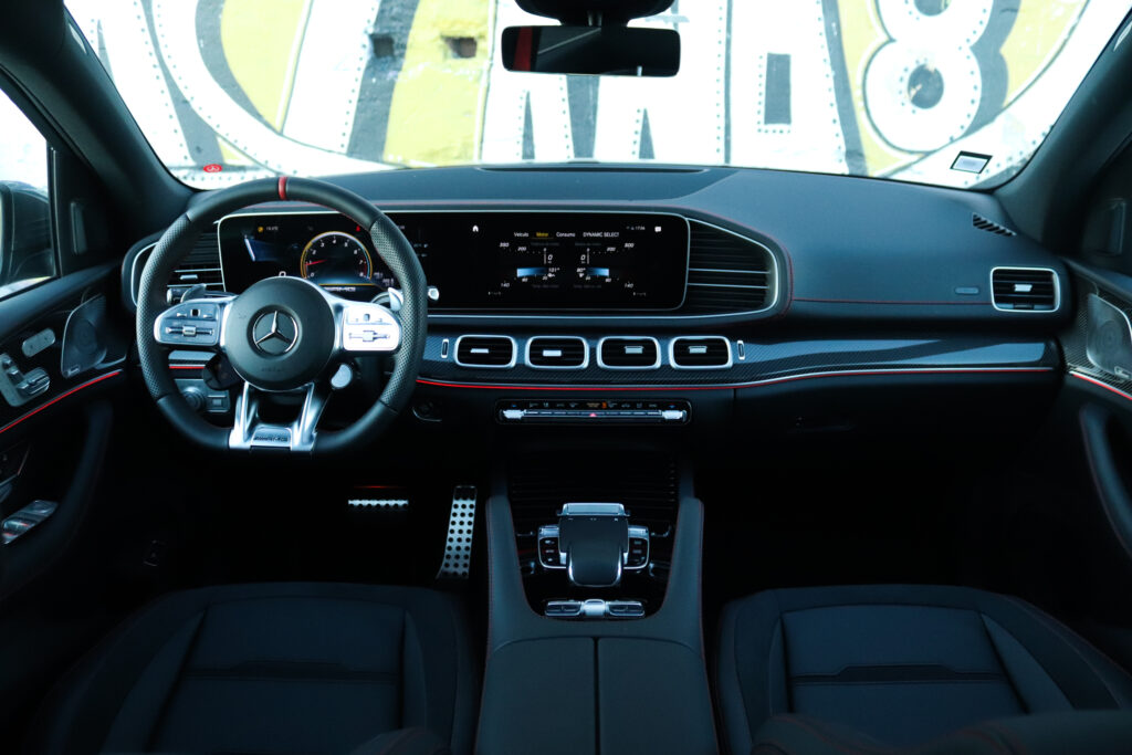 Ao selecionarmos o modo de condução mais desportivo, temos então um verdadeiro SUV desportivo que, apesar de não ser o mais potente da gama, chega (e sobra) para as encomendas. Os 435 cv (mais 22 cv de forma instantânea graças ao sistema mild hybrid), impulsionam as 2,3 toneladas quase sem esforço, sempre com toda a tração disponível muito por culpa da tração integral 4MATIC e das enormes jantes de 22 polegadas.