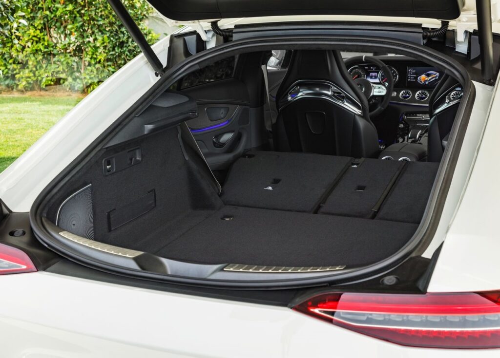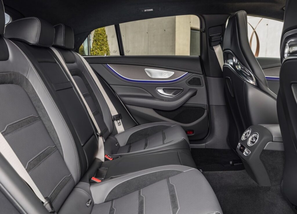 Pontuação 8/10 A Mercedes e a AMG não podiam atalhar no que toca à execução do interior deste AMG GT 4 portas e não haja dúvidas sobre a qualidade do habitáculo. Para lá dos materiais e da montagem, a qualidade nota-se, também, na consola que nos faz lembrar estarmos dentro de um casulo e nos dois enormes ecrãs que ocupam o lugar do painel de instrumentos e do sistema MBUX (Olá Mercedes!), ambos com 12,3 polegadas. Pode personalizar a vista (Classic, Sport e Supersport) e quase tudo é comandado e controlado através dos ecrãs. O volante AMG tem tudo o que é habitual nos volantes da Mercedes, permitindo controlar os modos e condução através de dois botões colocados por baixo dos braços horizontais e já conhecidos de outros AMG. É ali que se controla, também, a sonoridade do escape e ligar e desligar o ESP. A consola central tem botões que são pequenos ecrãs sensíveis ao toque e que duplicam o controlo dos modos de condução, sonoridade do escape, desligar o sistema “Stop/Start” e o som do sistema de info entretenimento. Enfim, olhando para o interior do AMG GT 4 portas, percebemos a qualidade e o luxo, a excelente posição de condução com ampla regulação de banco e volante e atrás, pode optar entre ter quatro ou cinco lugares. Se optar pelo pacote Luxury Lounge Pack, verá ser instalada uma consola central que se prolonga entre os dois bancos traseiros, com vários controlos e porta copos. A bagageira tem 461 litros de capacidade, mais que suficiente para o tipo de carro e tem a facilidade do carro ter o acesso à mala feito por uma quinta porta. Se escolher a opção de cinco lugares, pode rebater o banco e fica com 1324 litros de capacidade. Se quiser só quatro lugares, o carro fica com uma divisória em carbono que reforça a rigidez do chassis.