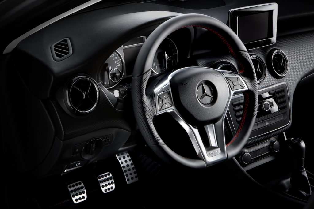 Exteriormente o Classe A sempre demonstrou proporções equilibradas e equipado com a linha AMG, o seu carácter desportivo sobressai, parecendo também mais nobre. As saídas de escape duplas e as jantes de liga-leve multiraios de 18’’ sublinham a atitude, mas a suspensão desportiva rebaixada, os travões dianteiros perfurados e a grelha dianteira Diamond fazem destacar ainda mais a raça do design exterior, que podem contar com óticas dianteiras com a tecnologia LED.