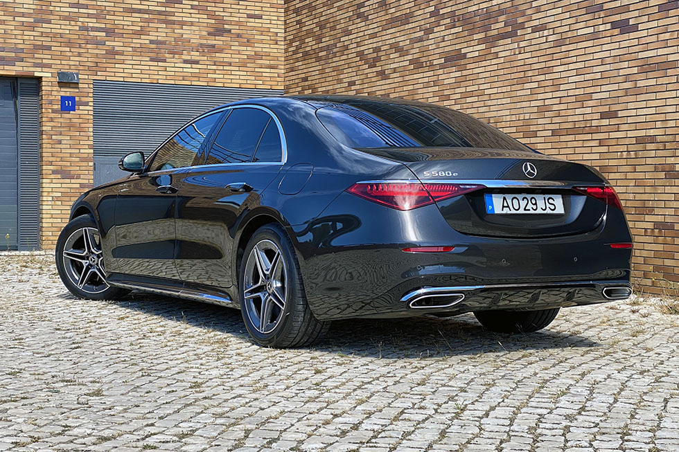 A capacidade que o sistema híbrido deste S580e tem de o fazer locomover em perfeito silêncio é verdadeiramente impressionante. Afinal, são quase 2,4 toneladas para transportar em saídas de garagem, no meio do trânsito, subidas, descidas, estacionamentos, autoestrada, tudo sem que o motor térmico dê sequer sinal de vida. Passados os primeiros 40 quilómetros, a média de consumo indicada pelo computador de bordo na instrumentação tridimensional ainda era de 0,0 litros para cada 100 quilómetros, enquanto do lado da eletricidade se estavam a gastar 20,7 kWh para a mesma distância. Sem o cuidado de fazer durar a carga da bateria, continuámos assim até perto dos 90 quilómetros percorridos, que foi quando o motor de combustão finalmente decidiu aparecer dando um ar da sua graça. Com uma utilização mista de cidade e estrada, acabámos por terminar a viagem com 230 quilómetros percorridos e com uma média de consumo de 6,4 litros de gasolina e de 8,5 kWh, sendo que mais de metade da distância foi efetuada em modo 100 por cento elétrico e apenas em 25 por cento do tempo de condução é que se utilizou o motor de combustão. Ou seja, com o S580e, é possível conduzir toda a semana em modo 100 por cento elétrico e deixar o combustível para as viagens de fim-de-semana.