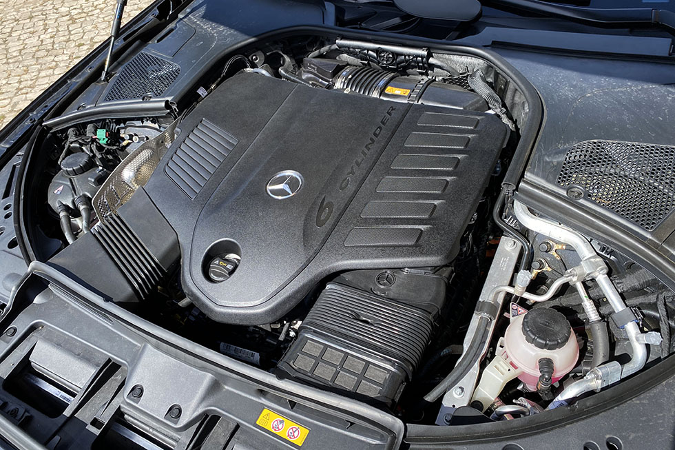 A versão S580e significa que está incluído um sistema híbrido neste Classe S para o locomover da forma mais eficiente possível. Do lado do motor térmico podemos contar com a presença de um já conhecido bloco de três litros, com seis cilindros em linha e 367 cavalos de potência. Mas do lado da motorização elétrica está agora presente uma nova motorização com 150 cavalos e 440 Nm de binário, que são suficientes para fazer andar as quase 2,4 toneladas do Classe S, sem a necessidade de utilizar o motor térmico. Até porque, com esta nova opção, e com a ajuda da bateria de 28,6 kWh, a autonomia máxima declarada deste S580e em modo 100 por cento elétrico, supera agora os 100 quilómetros. Mas claro que este continua a ser um híbrido e por isso, não estamos limitados ao motor elétrico. Se optarmos por usar os dois em conjunto, a autonomia é obviamente superior e ficam disponíveis 510 cavalos de potência combinada e um total de 750 Nm de binário.