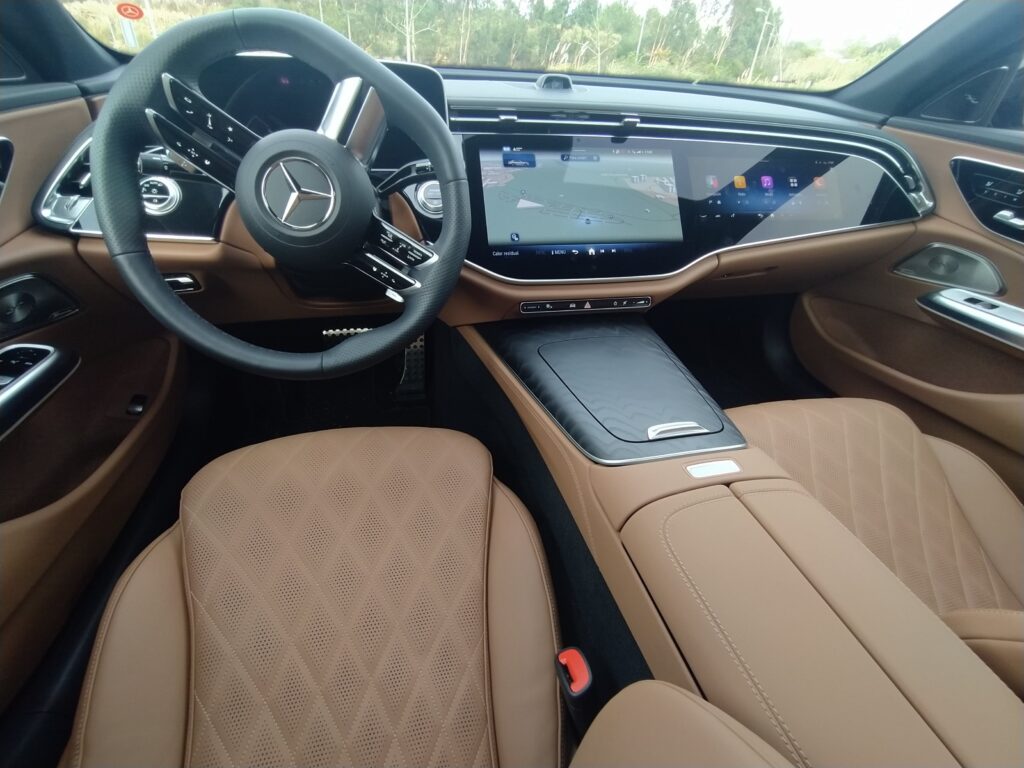 O interior é daqueles que dá vontade de levar para casa e instalar no sofá. Neste Classe E, a tecnologia foi incorporada de forma muito bem conseguida num habitáculo com um toque clássico, que confere mais classe ao conjunto. Ao entrarmos, somos presenteados com três ecrãs distintos, um para o Painel de Instrumentos (12.3) altamente configurável e com a possibilidade da informação ser apresentada em 3D, um ecrã central ( 14.4″) que gere todo o infotainment e um terceiro ecrã para o passageiro (12.3”). As linhas do tablier são elegantes, os controlos físicos são integrados da mesma forma. Os bancos são muito confortáveis, dando o apoio lateral necessário. O conforto nos bancos da frente é replicado de forma perfeita nos bancos traseiros, com o ambiente a ser aprimorado com um teto panorâmico que dá mais luz ao interior. O espaço para os passageiros é generoso para dois passageiros, com espaço de sobra. O requinte da frente é replicado atrás, apesar do menor acesso à tecnologia, como seria de esperar. A qualidade de construção é a toda a prova, e o requinte do espaço não deixa ninguém indiferente. A capacidade da bagageira chega aos 540 litros.