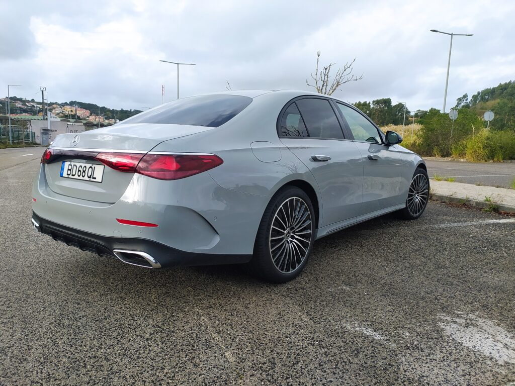 No exterior, temos um carro com as linhas Mercedes bem vincadas. A marca germânica tem mantido a sua identidade, apesar de fazer evoluir os traços marcantes dos seus carros. A identidade mantém-se, mas com um toque de modernidade. Neste Classe E acontece um pouco isso. Neste caso específico do 220d, com o equipamento AMG, o aspeto exterior tem um toque mais desportivo.