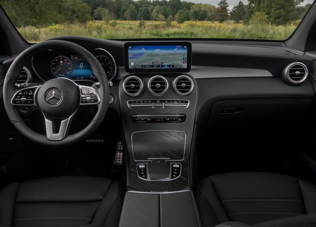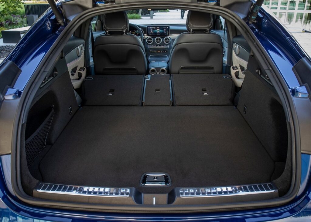 O interior não reserva surpresas e apesar da forma da carroçaria, o GLC não é assim tao apertado como isso. Por outro lado, a forma dos vidros traseiros e por serem escurecidos, deixa ver pouco para fora, tornando o interior muito escuro. E uma criança ou alguém mais baixo dificilmente vê alguma coisa para fora. O espaço para as pernas é suficiente e até em altura há espaço suficiente. Não é perfeito e não é tão bom como na versão “normal”, mas suficiente. E porque a Mercedes não quer que o GLC Coupé fique refém da carroçaria, há cinco lugares e não apenas um banco com dois lugares. Mas não queria viajar no lugar do meio…