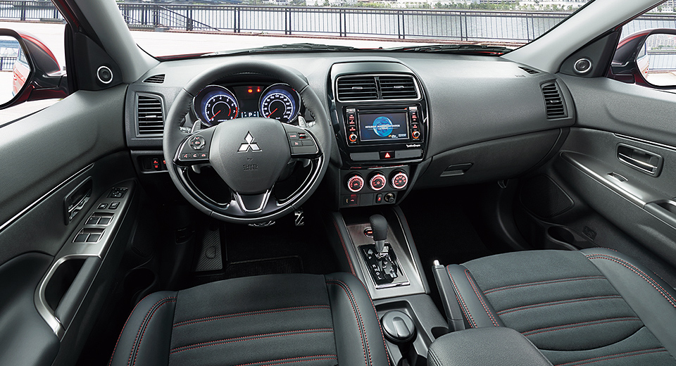 No habitáculo, as mudanças são em maior quantidade, mesmo não chegam para revolucionar o cockpit do ASX. Aliás, se a Mitsubishi aponta para um novo design do painel central, só com olho clínico se consegue descobrir as diferenças para o do modelo anterior, exceção feita aos acabamentos da consola central (com acabamento em preto), aos painéis de interruptor das portas com acabamento em pratedado e à mudança da localização de alguns pequenos compartimentos de arrumação, que obrigaram a redesenhar consola inferior.
