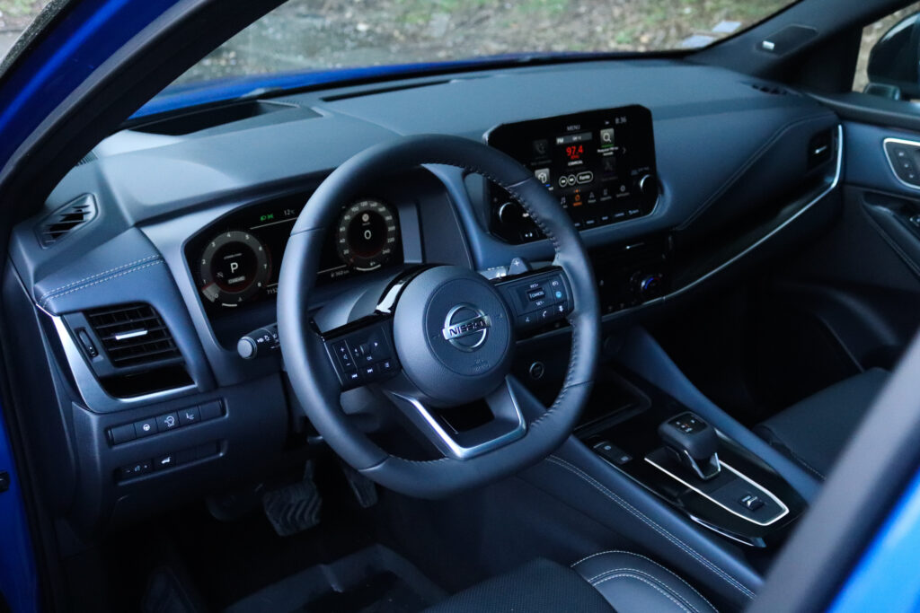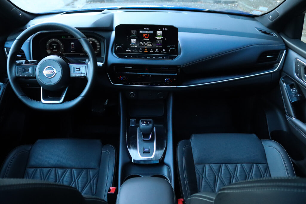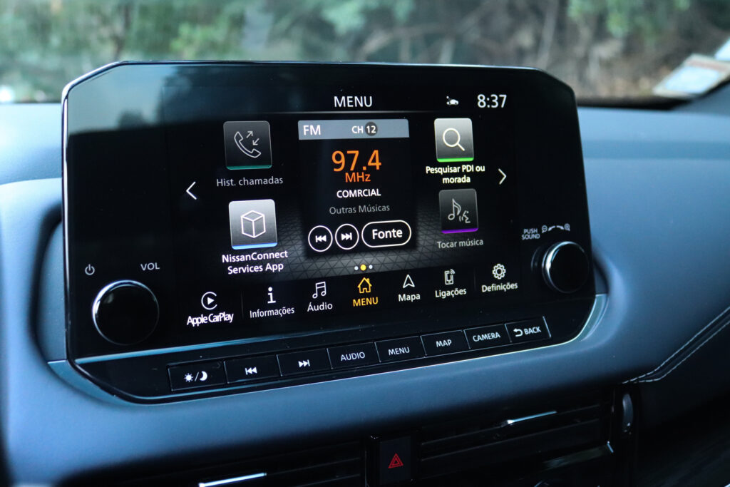 Interior (8/10) O Nissan Qashqai em ensaio apresenta um habitáculo com uma boa qualidade de construção e, com este equipamento superior, a marca nipónica conta com um cuidado especial ao nível de revestimentos. Para além disso, o ecrã central, de 9 polegadas está posicionado numa zona superior do tablier, enquanto o painel de instrumentos de 12,3 polegadas é totalmente digital e personalizável. Destaque ainda para um head-up display de 10 ou sistema de som bose de série nesta versão.