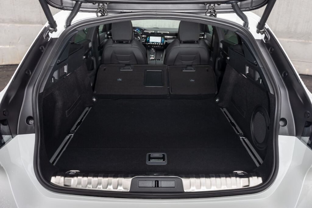 Tudo isto é acompanhado por um painel de instrumentos digital com várias configurações disponíveis e, inclusive, visão noturna que deteta peões e animais que se atravessem no caminho. Ao centro do tablier surge um ecrã central de 10 polegadas que recebe menus extra dedicados a esta versão eletrificada. É o caso de informações relacionadas com gastos energéticos ou ainda um gráfico com os fluxos de energia entre motor a combustão, baterias e motor elétrico, algo típico em todos os veículos eletrificados da atualidade. Nos bancos traseiros, os passageiros viajam com desafogo, principalmente no espaço para pernas e em largura. Contudo, a as linhas exteriores prejudicam ligeiramente o espaço para cabeça. Quanto à bagageira, a versão Hybrid perde face às versões a combustão pura devido à inclusão da bateria e, assim, fica-se pelos 487 litros, menos 43 litros. Pode parecer algo reduzido para uma carrinha de cariz familiar, mas os espaços de arrumação no interior ajudam a atenuar este detalhe.