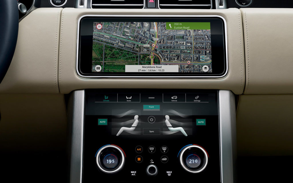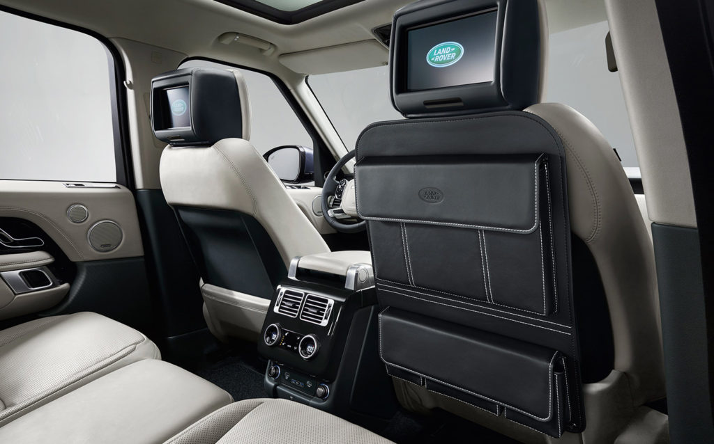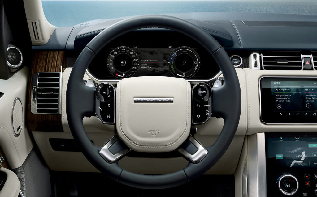 Exibe, também, pré-aquecimento ou refrigeração do habitáculo, volante multifunções e com ajustes em altura e profundidade, quatro vidros elétricos com anti entalamento, volante em couro aquecido, bancos dianteiros aquecidos, tampa da bagageira acionada por gestos, acesso sem chave, fecho de portas amortecido, ar condicionado com três zonas e completo sistema de entretenimento que tem dois ecrãs de 10 polegadas sensíveis ao toque, algo lento para os dias de hoje. Tem sistema de navegação, controlo por voz, conectividade Bluetooth, ecrã interativo do painel de instrumentos com o condutor, televisão digital e um computador de bordo que interage com o condutor. Claro está que a travagem assistida de emergência está disponível de série. Não podemos esquecer o sistema de som Meridian, as jantes de 20 polegadas com 12 raios, sistema de câmaras surround, aviso de saída de faixa e o sistema para andar fora de estrada “Terrain Respond”. Há 17 tomadas USB, HDMI, AUX e 12 volts para que ninguém se possa queixar que ficou sem bateria…