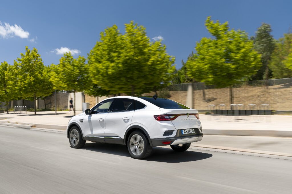 Ao volante (8/10) Ao volante, o Renault Arkana E-Tech tem uma afinação de suspensão ligeiramente mais suave, o que beneficia o conforto e ajuda a filtrar as irregularidades da estrada. Apesar de prejudicar ligeiramente a dinâmica, o Arkana continua a ser superior ao Kadjar neste capítulo. A variante híbrida é mais pesada do que a versão TCe 140 e isso sente-se muito ligeiramente na transferência de massas em curvas mais velozes.