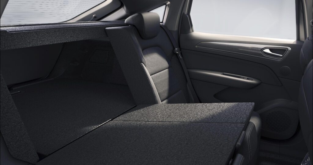 Interior (7/10) Ao abrir a porta, a variante E-Tech mantém os atributos das versões a combustão pura, contudo, sai penalizada no que toca à bagageira. De facto, o E-Tech garante 480 litros de volumetria contra os 513 litros da versão a combustão pura. Relativamente a espaço, a Renault encontrou um bom compromisso entre estilo e funcionalidade, ao permitir viajar com dois adultos nos bancos traseiros.