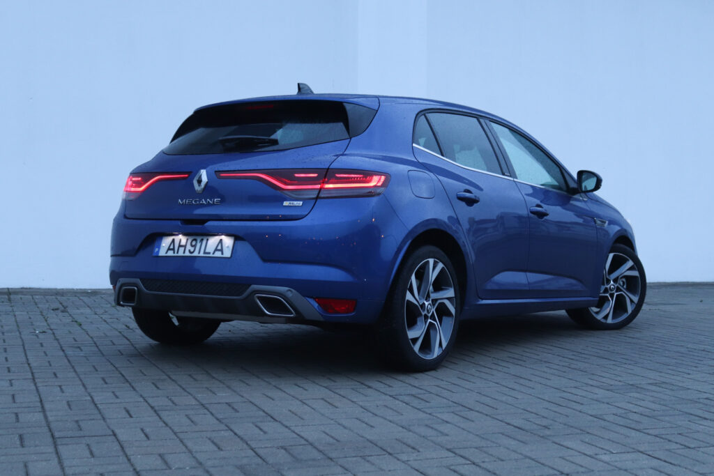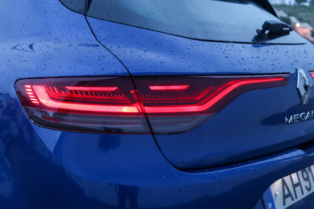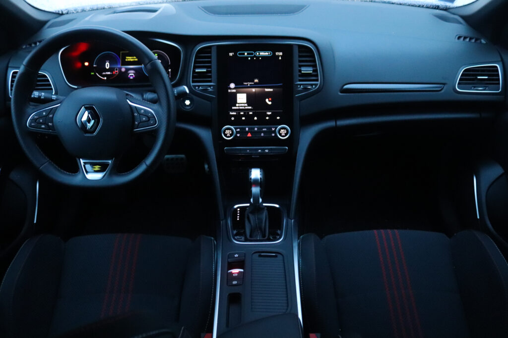 Equipamento (8/10) A unidade em ensaio conta com o nível de equipamento R.S. Line. esta variante, o Renault Megane está equipado de série com bancos desportivos R.S. Line, jantes de 17 polegadas, travagem de emergência assistida com deteção de peões, alerta de excesso de velocidade com reconhecimento de sinais de trânsito, modos de condução multi-sense, apoio de arranque em subida, travão de estacionamento elétrico, câmara de marcha-atrás, sensores de chuva e luz, faróis full LED, ar condicionado automático bi-zona, entre outros.