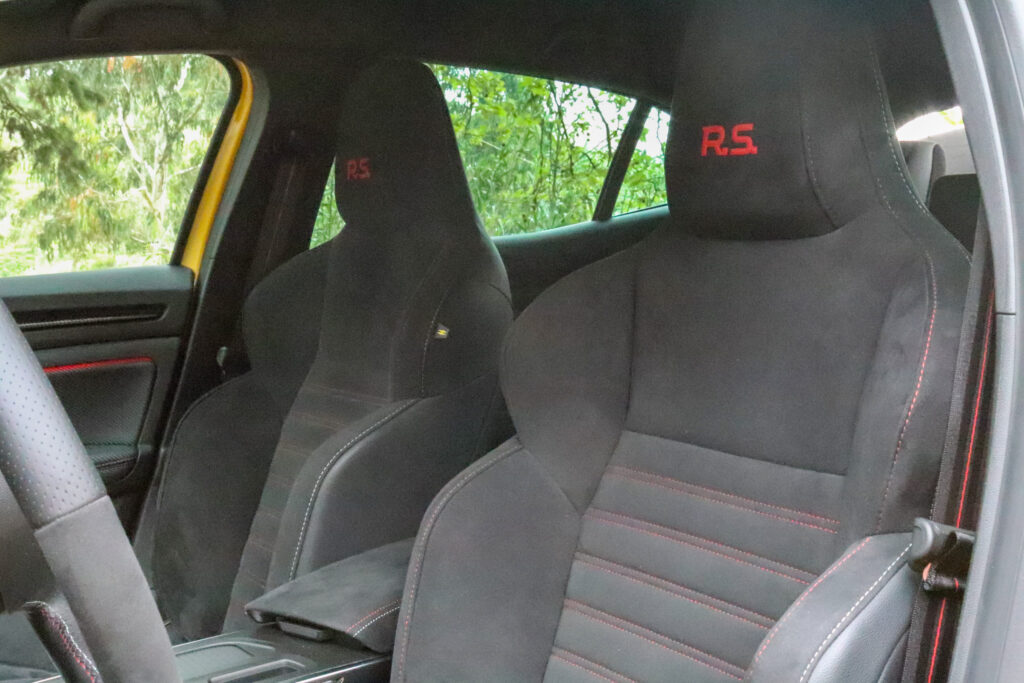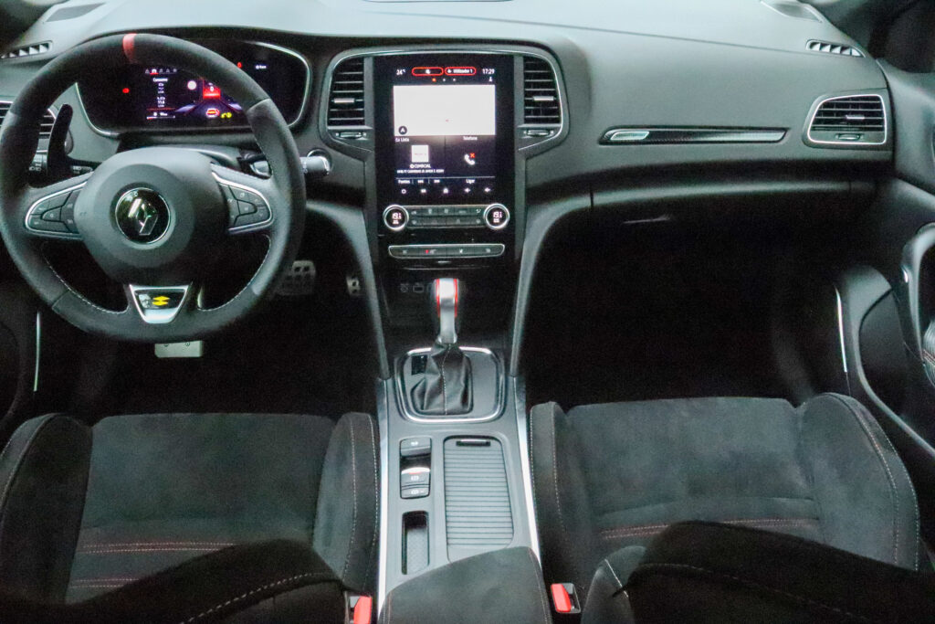Interior (8/10) Passando para o interior, rapidamente percebemos que não estamos num Mégane “normal” graças à inclusão de alcantara em vários componentes, como é caso dos bancos desportivos e nas laterais do volante. Para além disso, o habitáculo ficou mais atual e moderno graças a um painel de instrumentos digital e um novo sistema de infotainment que transmite as informações através de um ecrã central de 9,3 polegadas. Este permite a ligação ao smartphone através de Apple CarPlay e Android Auto. Ao nível de espaço, o Mégane R.S. Trophy permite sentar quatro adultos com relativa facilidade, enquanto a bagageira garante 384 litros de capacidade.