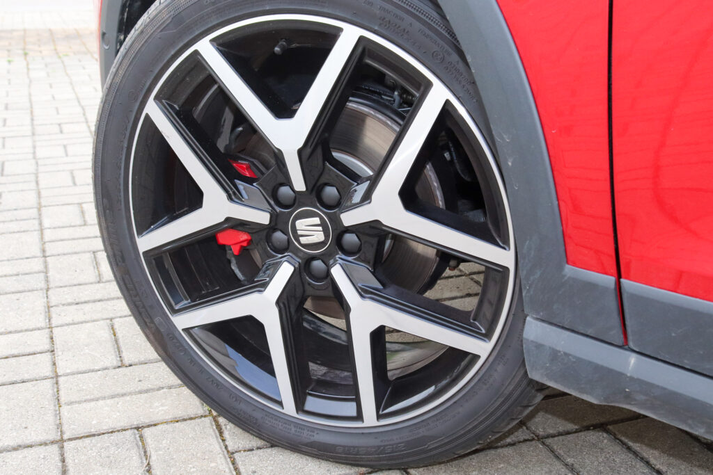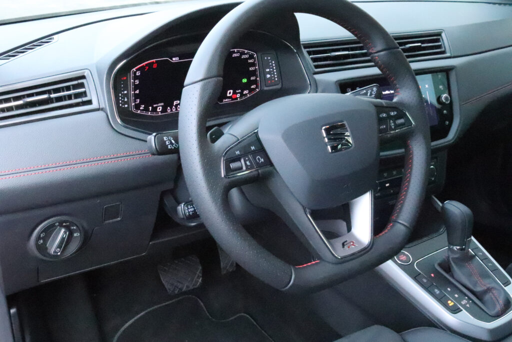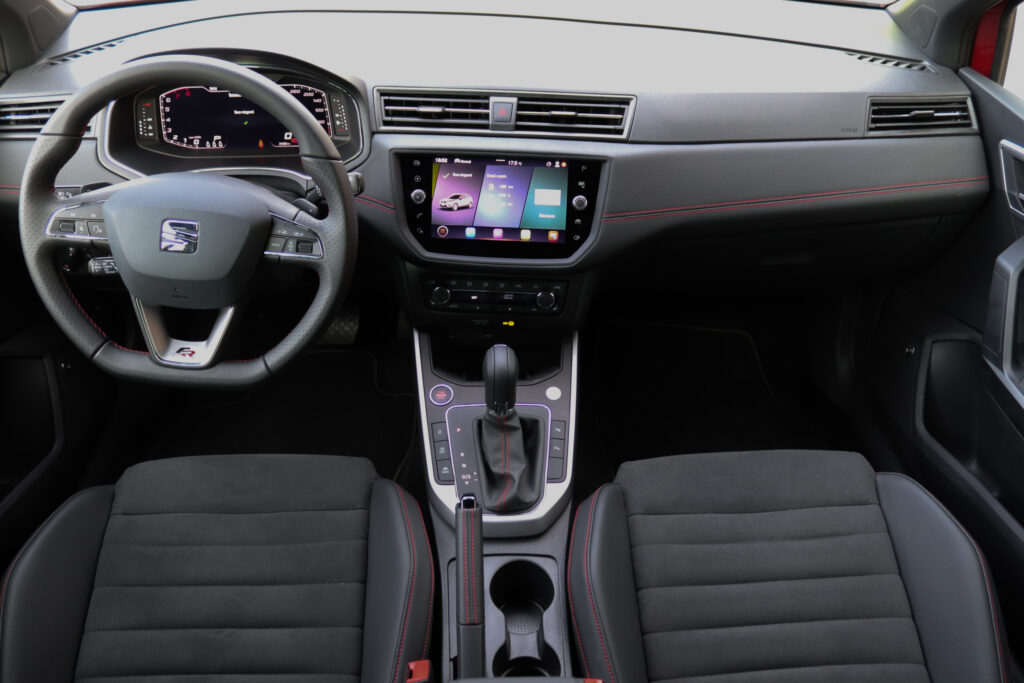 Equipamento (8/10) No que diz respeito a equipamento, a unidade em ensaio conta com o nível de cariz mais desportivo e equipado, o FR. De série encontramos coisas como farolins LED, luzes diurnas LED, barras de tejadilho, pintura bicolor, vidros traseiros escurecidos, bancos FR, ecrã central que transmite as informações do sistema de infotainment com conectividade Apple CarPlay e Android Auto, sensor de chuva, sistema de apoio ao arranque em subida, cruise control com limitador de velocidade ou patilhas no volante para a caixa DSG. Como é comum na Seat, a lista de opcionais é bastante recheada e permite personalizar o SUV a gosto de cada cliente, porém, também ajuda a subir o preço final.