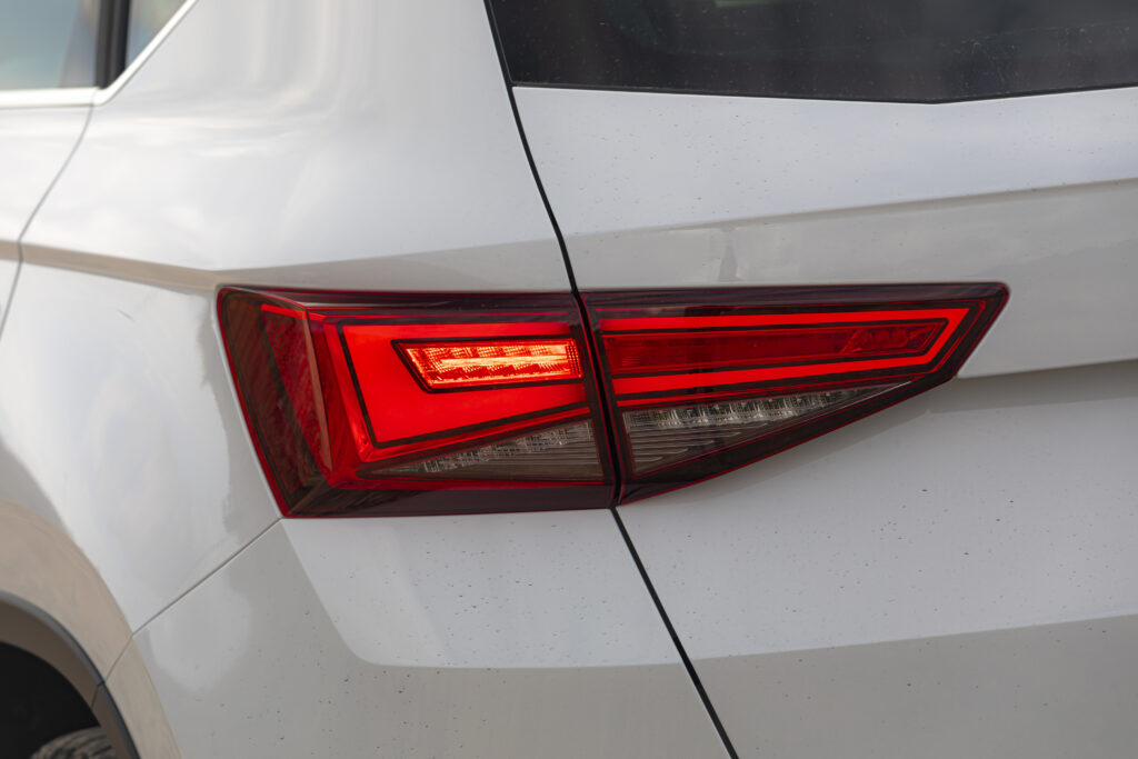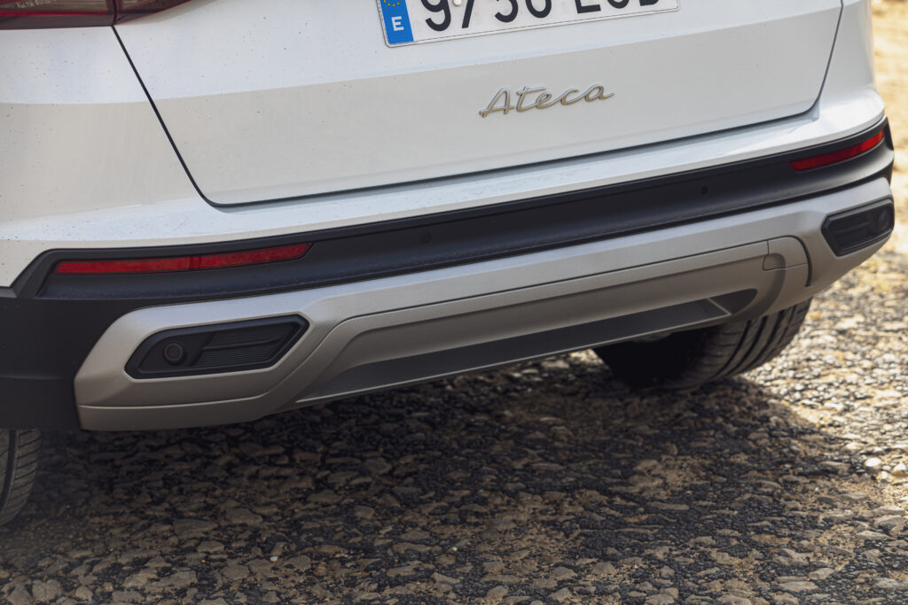 Exterior (8/10) O grande destaque exterior é, sem dúvida, a adoção da mais recente linguagem de design estreada pelo irmão maior, o Tarraco, com nova grelha e faróis full LED, tecnologia que também encontramos atrás, com piscas dinâmicos. Ambos os para-choques são novos e fizeram o Ateca crescer 18 milímetros em comprimento. As jantes do “nosso” Ateca têm 18 polegadas e o seu acabamento maquinado com pintura especial, com interior em cinzento, tem um custo adicional de 331 €. Atrás, a designação “Ateca” surge com novo estilo de letra.