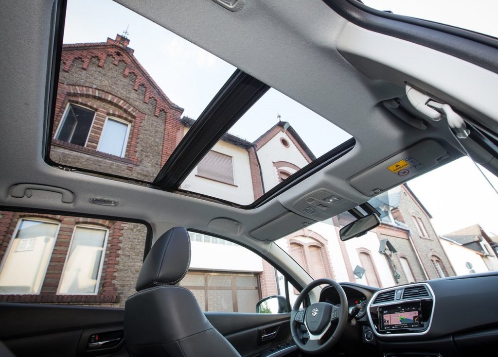 Equipamento (8/10) Tal como o irmão Vitara, também o S-Cross está apenas disponível em dois níveis de equipamento, o GLE e o GLX. Logo no nível de acesso, sempre associado à tração dianteira, este é um crossover a cuja lista de equipamento de série pouco equipamento falta. O GLE conta assim, por exemplo, com elementos como as jantes de 17 polegadas, vidros escurecidos, acesso e arranque sem chave, iluminação LED dianteira e traseira, ar condicionado automático bizona, câmara traseira e a travagem autónoma de emergência. Optando-se pelo GLX, disponível em versões de tração dianteira e Allgrip, o S-Cross passa também a contar com sensores de estacionamento dianteiros e traseiros, estofos, apoio de braços e forros das portas em pele, sistema de navegação e teto panorâmico.