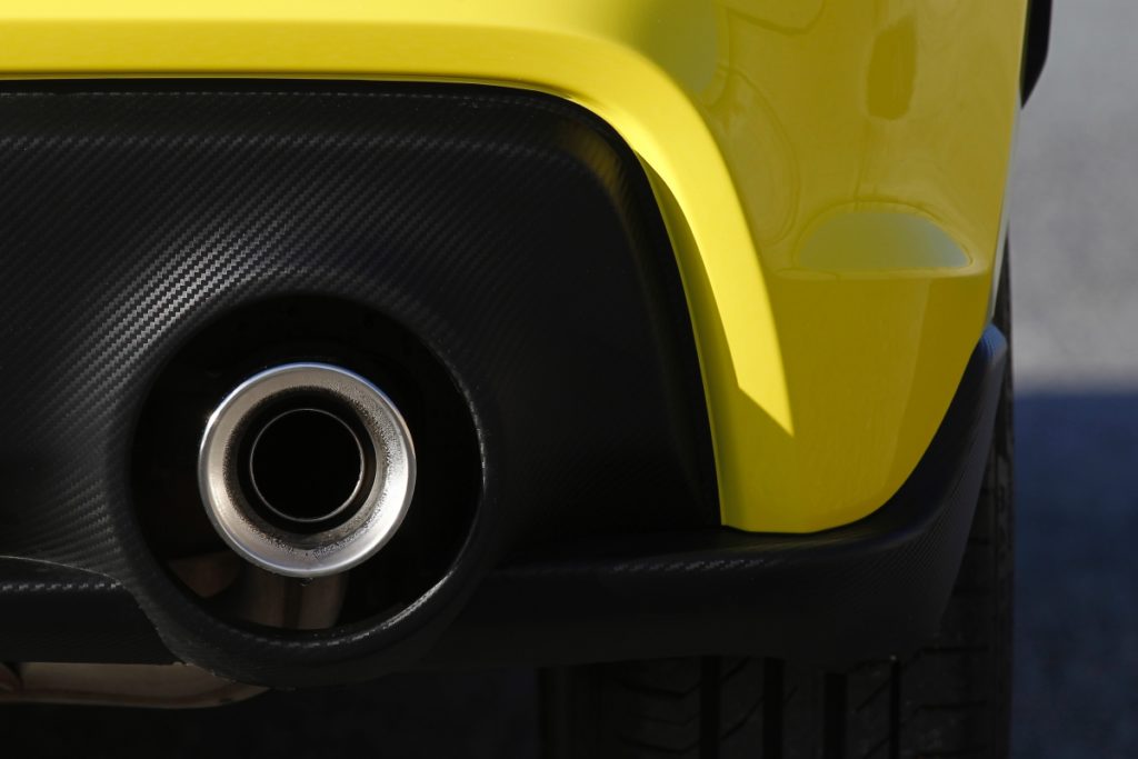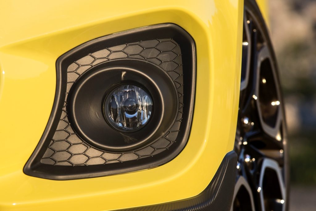 Em termos de estilo da carroçaria, descontando o que já referi, está, praticamente, igual. O rebaixamento nota-se e confere-lhe mais algum músculo, as duas saídas de escape redondas e generosas adicionam a ideia de um desportivo de mão cheia mas o resto está na mesma. As cavas das rodas estão preenchidas com jantes de 17 polegadas forradas com excelentes pneus Continental e o puxador da porta traseira continua escondido no pilar da porta.