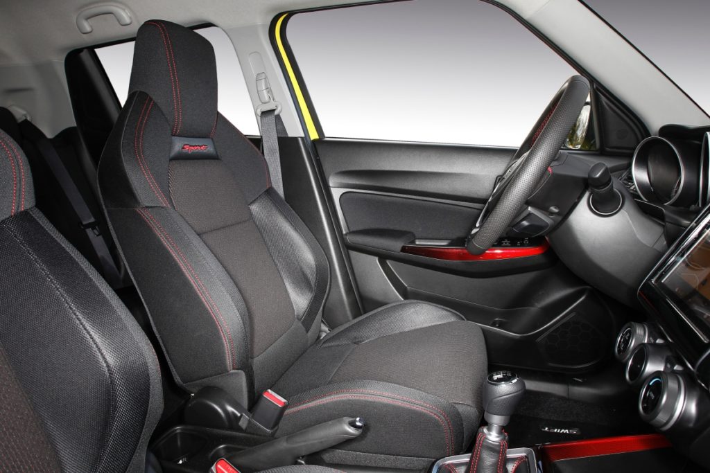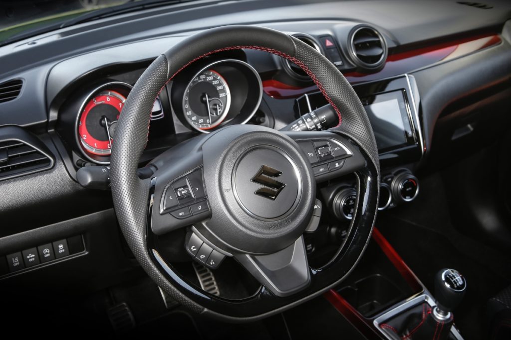 Nada mudou no interior do Swift, ou seja, quem desenhou o carro por dentro gosta de estar no controlo, certamente, pois tudo esta alinhado como deve ser, mesmo que fiquemos um nadinha arqueados. Para alguns será problema, para mim nem por isso. Os ajustes do volante são ideais para encontrar, facilmente, a melhor posição de condução com banco-volante-pedais numa relação quase perfeita. O painel de instrumentos é claro e com boa leitura, o ecrã central com o sistema de info entretenimento funciona de forma suficiente e tudo dentro do Swift faz sentido. Naturalmente que é um nadinha acanhado e é verdade que há aqui e acolá alguns materiais de menor valia que, mesmo assim, não destoam no resultado final. E pelo preço cobrado pela Suzuki, querer mais não é legítimo.
