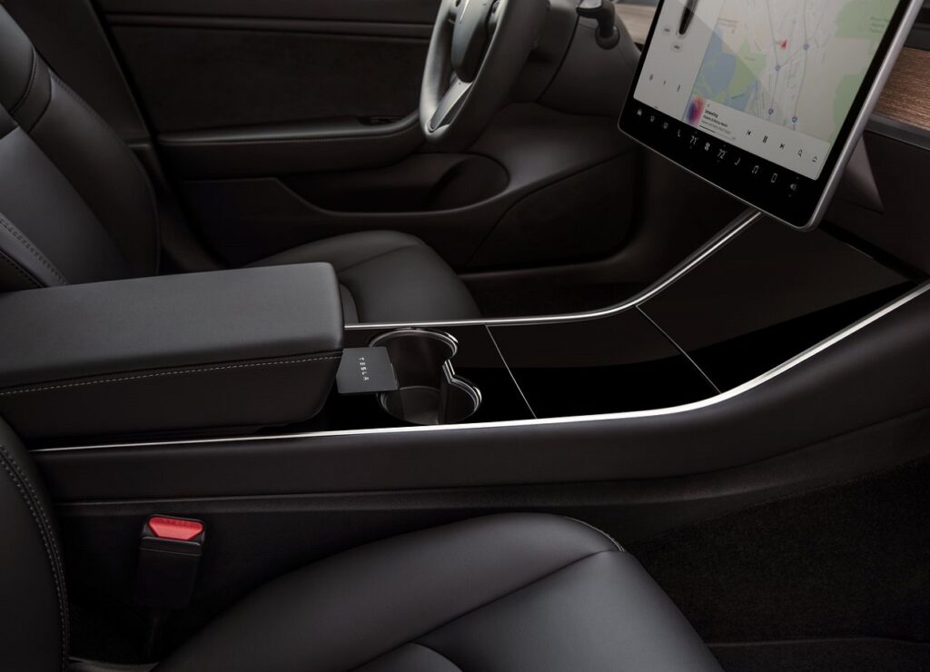 O rebatimento do banco traseiro permite que cargas mais compridas possam ser levadas dentro do Model 3 sem problemas.
