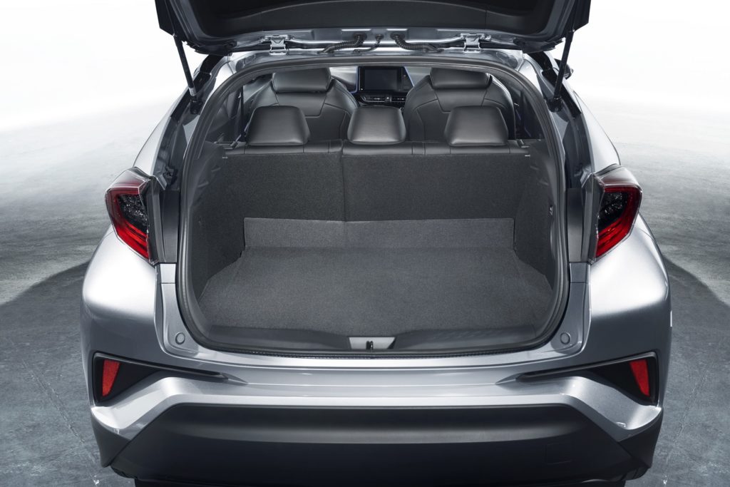 Quando olhamos para a traseira, temos de parar por alguns instantes e fazer um esforço para perceber o que os engenheiros da Toyota pretenderam fazer com este design. Mas a verdade é que depois do primeiro olhar, percebemos claramente que os grupos ópticos e a bagageira acabam por se enquadrar na perfeição com o spoiler superior de grandes dimensões, acabando por transmitir um ar desportivo e robusto ao C-HR