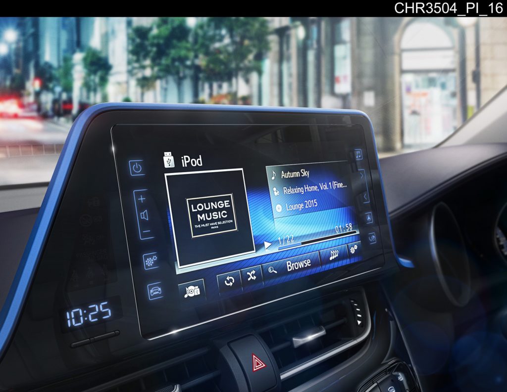 Mas o elemento que se destaca no habitáculo do C-HR é mesmo o ecrã tátil de grandes dimensões situado na consola central, e onde dispomos de todas as funções de informação, navegação, entretenimento e gestão da energia eléctrica das baterias.
