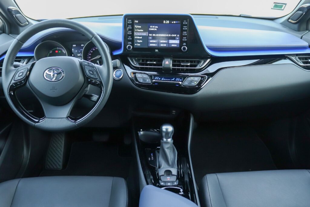 Interior (7/10) No interior encontramos uma qualidade de construção assinalável, um ponto em que a Toyota não costuma desapontar e, mesmo sendo o SUV mais pequeno da marca, não deixa ficar mal nos materiais utilizados. Este é também um modelo altamente personalizável e conta com várias soluções para os clientes deixarem o SUV a gosto. A isto acrescenta-se um reforço tecnológico com destaque para o ecrã central de oito polegadas que transmite as informações do sistema de infotainment Toyota Touch 2. Este tem os sistemas de conectividade Apple CarPlay e Android Auto, cada vez mais comuns nos veículos atuais. De referir que tem um funcionamento rápido e intuitivo, mas também grafismos muito mais agradáveis à vista. No que diz respeito a espaço, à frente é agradável e suficiente, porém, na segunda fila não podemos dizer o mesmo. A localização das baterias e a carroçaria estilo coupé reduz as quotas de habitabilidade em altura, apesar de o espaço para pernas ser razoável. Quanto a bagageira, contamos com 358 litros, um valor algo curto quando comparado com alguns rivais.
