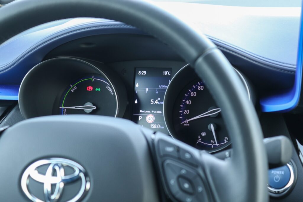 Motor (9/10) Quanto ao motor, a unidade de ensaio está equipada com o bloco 2.0 Hybrid Dymaic Force, que é como que diz, a opção mais potente do modelo. O motor 2.0 litros está associado a um sistema híbrido que oferece 184 cavalos e 190 Nm de binário. Com estes valores é possível ter performances interessantes, sem que tudo isso implique grandes gastos de gasolina. Ao pisar o acelerador com mais fulgor o SUV responde de forma assinalável com destaque para uma caixa CVT cada vez mais silenciosa, o que demonstra uma boa evolução da Toyota no que a insonorização diz respeito. Na minha opinião, apesar desta motorização aumentar o preço final, é o mais adequado para o C-HR.