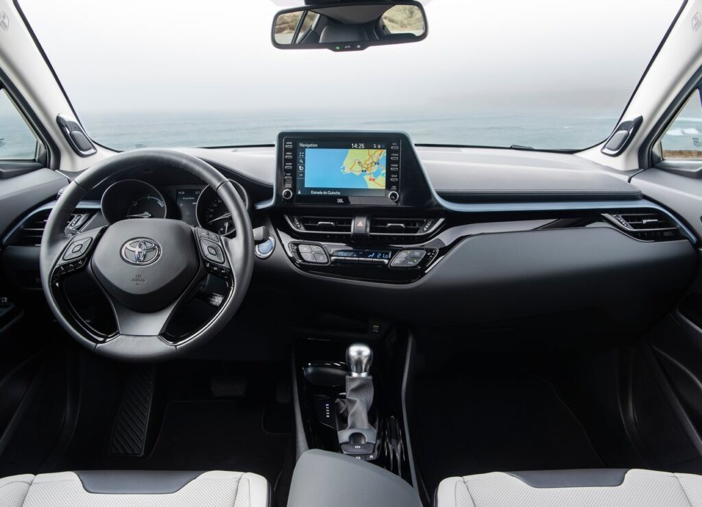 Pontuação 7/10 O CH-R na versão Lounge está muito bem equipada. Vidros elétricos, ar condicionado automático, vários airbags entre eles o de joelho, sistemas de segurança englobados no Toyota Safety Sense, como a travagem autónoma de emergência, manutenção na faixa de rodagem, entre muitos outros. Jantes de liga leve de 18 polegadas, sensores de luz e chuva, acesso e arranque mãos livres, fecho central de portas, espelhos retrovisores exteriores elétricos, aquecidos e rebatíveis, vidros traseiros escurecidos, sensores de estacionamento á frente e atrás, câmara auxiliar traseira, reconhecimento de sinais de trânsito, máximos automáticos, cruise control adaptativo, alerta do ângulo morto, limitador de velocidade, controlo de assistência ao arranque em subida, luzes traseiras adaptativas, faróis com nivelamento automático, sistema de navegação e Toyota Touch 2. Ligação Bluetooth, entrada USB, sistema de som JBL, ecrã multimédia de 8 polegadas, bancos dianteiros desportivos e aquecidos, regulação de bancos e volante, para lá de alguns outros itens mais comuns.