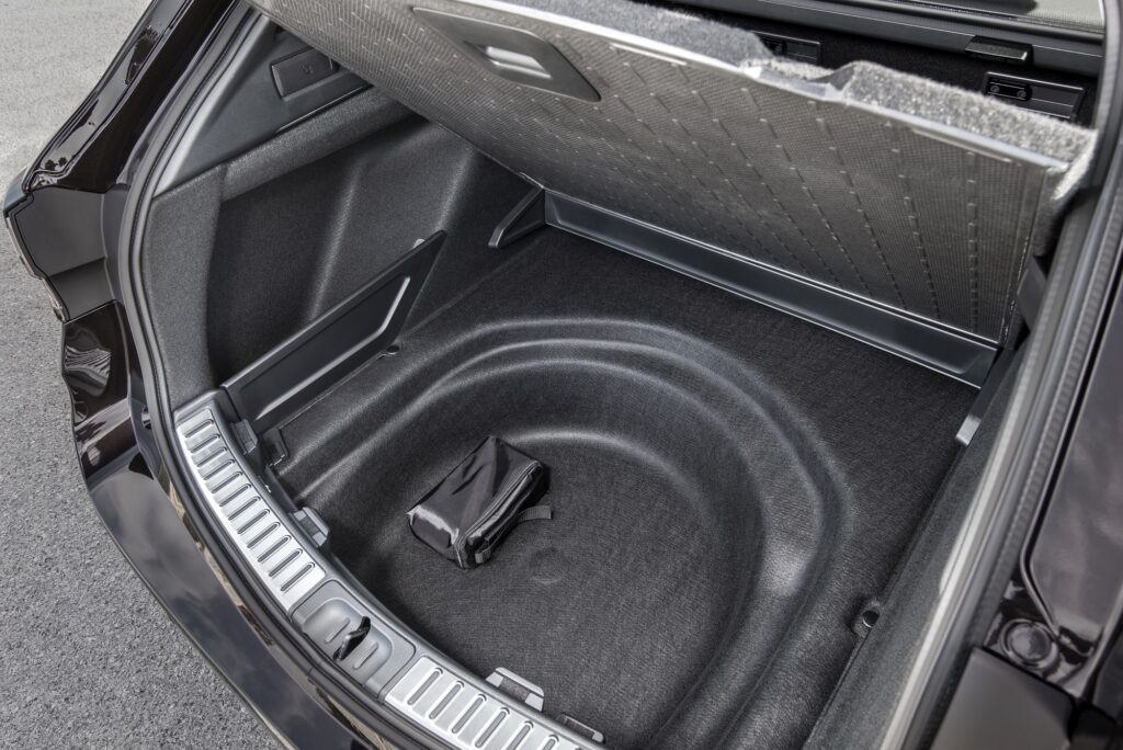 De resto, a justificar os cuidados acrescidos nas manobras de marcha-atrás, estão não só os mais de 4,6 metros de comprimento, mas também o espaço reservado para uma bagageira cuja capacidade inicial roça os 600 litros. Isto, já com a funcionalidade proporcionada por um portão de accionamento elétrico, excelente plano de carga, chapeleira extensível recolhível com um só toque, alçapões laterais, ganchos e iluminação LED. Não faltando sequer um alçapão a toda a dimensão do espaço por baixo do piso falso… ainda que conquistado à custa da dispensa do pneu sobressalente!