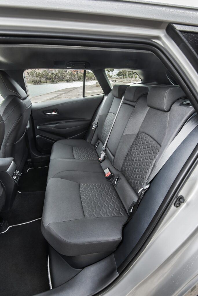 E já que falamos que aspectos menos positivos, uma palavra para o acesso (baixo) através das portas traseiras, assim como para o assento demasiado saliente do lugar do meio – na verdade, o único aspecto menos convincente no domínio da habitabilidade, já que a Corolla Touring Sport garante não só espaço suficiente para cinco ocupantes, como nem sequer possui qualquer túnel de transmissão a interferir com os pés dos passageiros de trás!