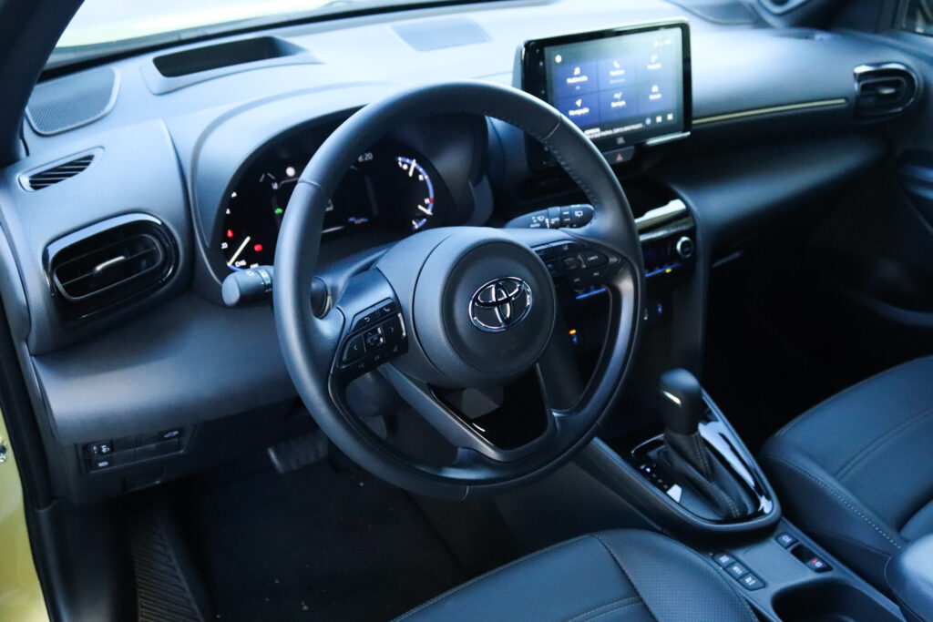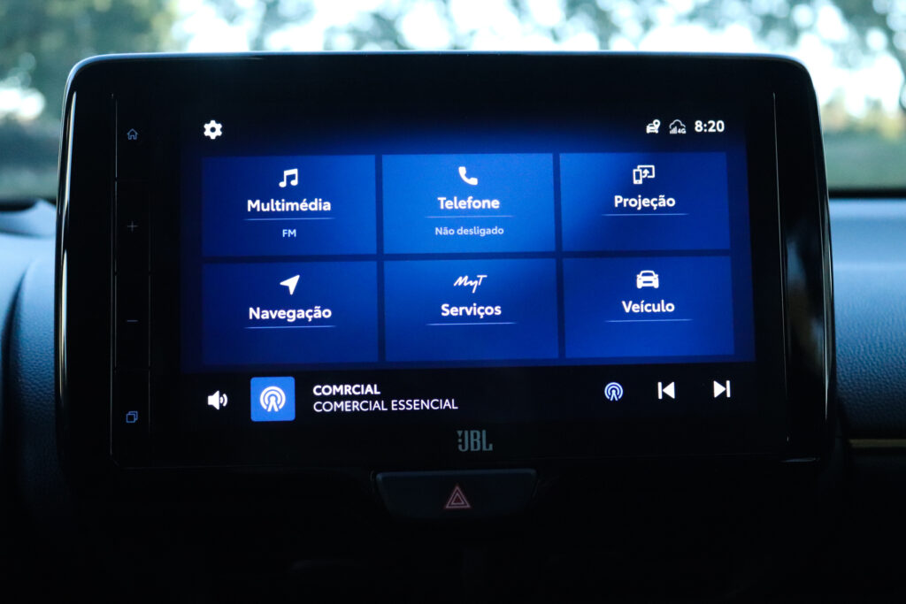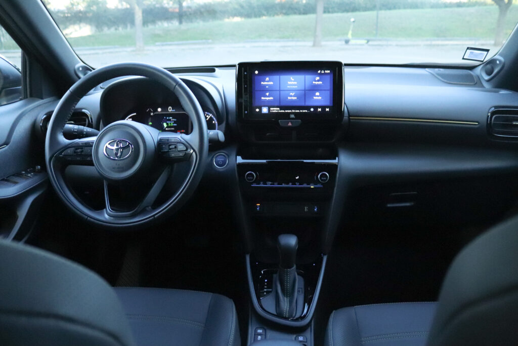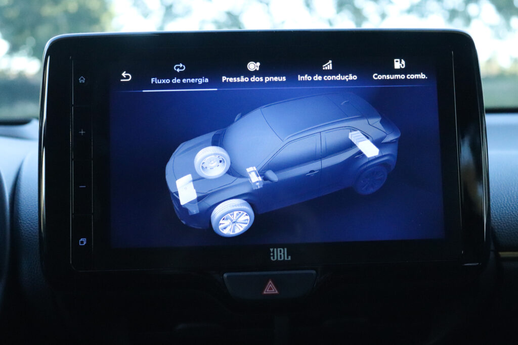 Interior (7/10) Se por fora há uma clara diferenciação entre o Yaris e o Yaris Cross, no habitáculo a Toyota seguiu a filosofia inversa. De facto, o tablier apresenta o mesmo design, com destaque para o ecrã central de 9 polegadas onde são transmitidas as informações do sistema de infotainment “Toyota Smart Connect”, uma novidade introduzida na gama Yaris. Esta nova geração apresenta-se com um funcionamento mais simples graças a menus bem “arrumados”. Apesar de existir uma melhoria significativa no grafismo, o sistema do Yaris Cross ainda continua aquém de alguns rivais, embora tenha encurtado a distância com esta nova geração do infotainment. De referir que este sistema permite atualizações “over-the-air” e conta com conectividade através de Apple CarPlay e Android Auto.