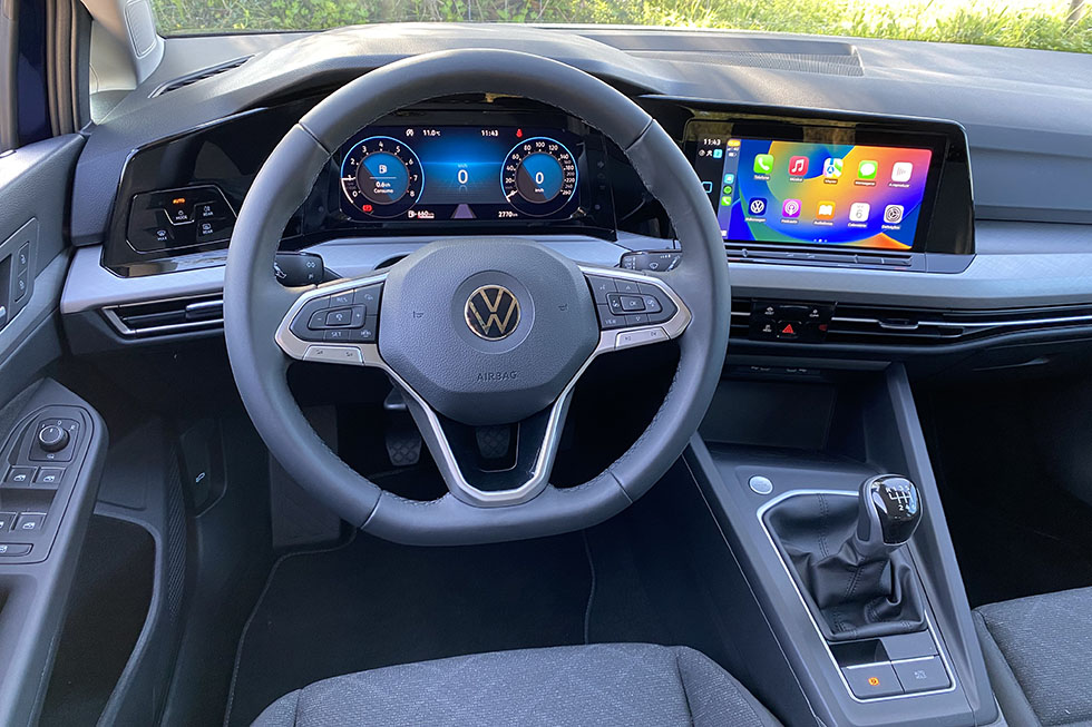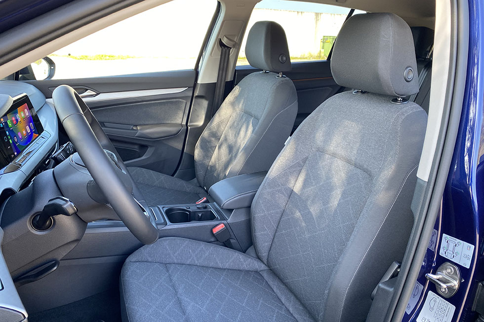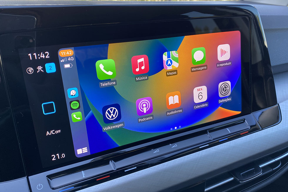 A ideia de simplicidade que conhecemos lá fora, mantém-se também no habitáculo, com diversos traços minimalistas e assentos de visual mais convencional, mas que permite uma posição confortável ao volante. Em termos de espaço disponível, o Golf continua a ser um pequeno familiar, não estando, por isso, naquele patamar de espaço a que nos começamos a habituar nos automóveis elétricos com uma maior distância entre eixos. Ainda assim, e para quem se senta atrás, o Golf acaba por não desiludir, uma vez que o habitáculo tem uma boa medida em altura um espaço total muito semelhante ao do seu antecessor. A bagageira mantém um bom acesso, uma capacidade de 380 litros e um piso amovível que se pode colocar em duas alturas distintas e ainda esconde um outro espaço de arrumação por baixo deste.