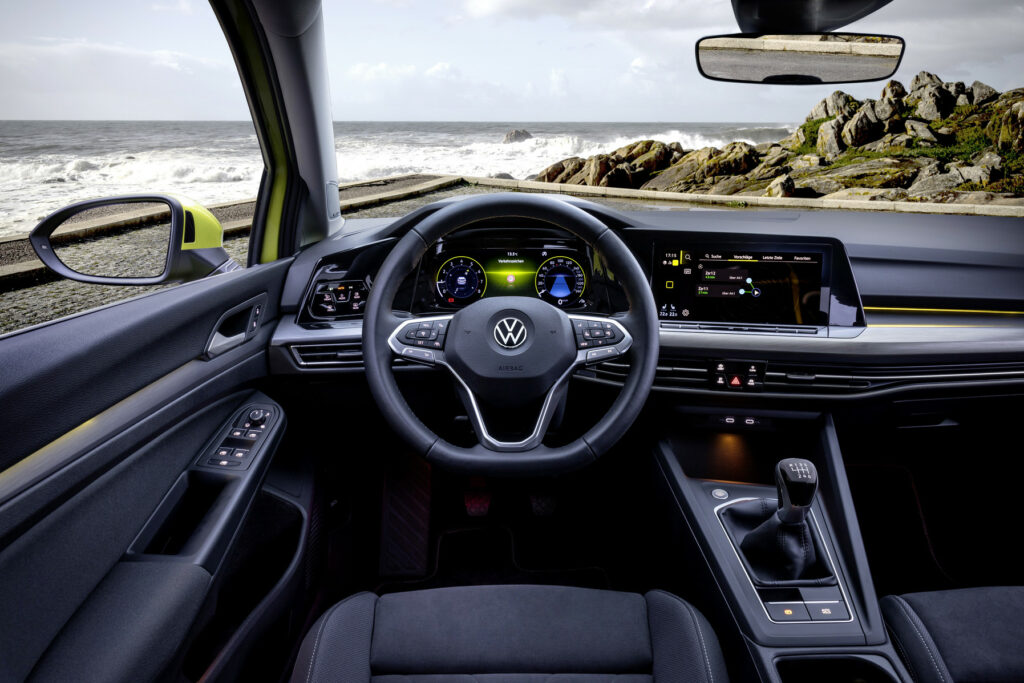Interior (8/10) É ao abrir a porta e ao passarmos ao habitáculo que todo o conservadorismo de que a Volkswagen é acusada quando o tema é Golf deixa de fazer sentido. Digitalização é a palavra de ordem, graças não só aos grandes displays do painel de instrumentos e do sistema de infotainment, bem como pela quase total ausência de botões físicos, uma solução que poderá não agradar a todos, na verdade. Apesar das superfícies táteis – para controlo do volume de som e da temperatura da climatização, por exemplo – funcionarem bem, a centralização de praticamente todas as funções de conforto no ecrã tátil requer alguma habituação.
