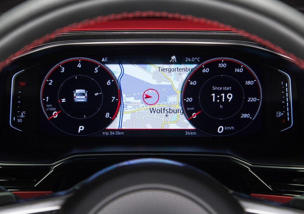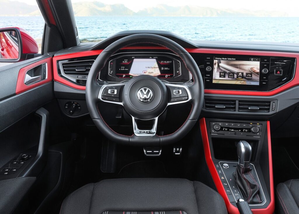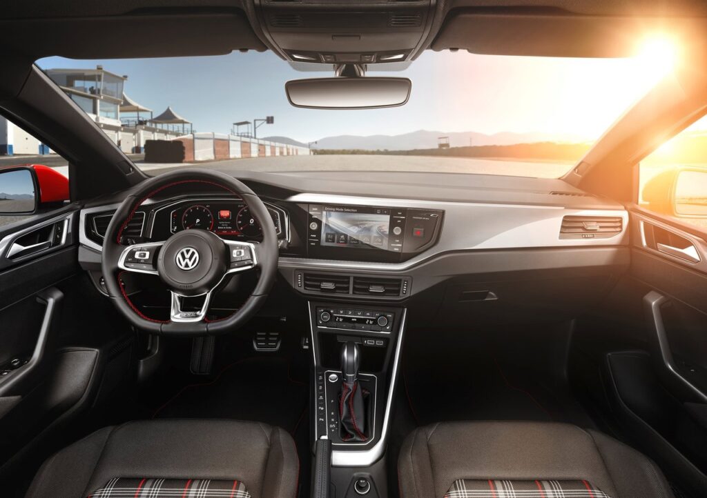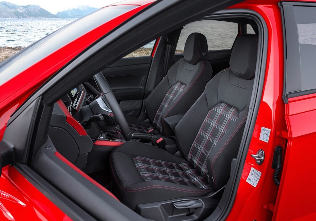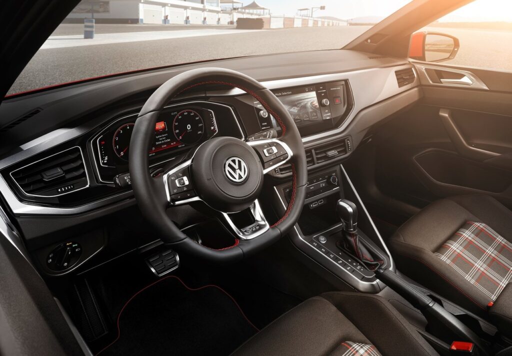 No interior temos mais alguns indicadores que este é um Polo diferente, sobretudo pelos bancos desportivos estofados em pele e com um tecido “tartan” preto, branco e vermelho muito semelhante ao que a VW usou no primeiro Golf GTI. Bancos de qualidade, confortáveis e reguláveis em altura e no apoio lombar. A posição de condução ótima é muito fácil de encontrar e como no Polo “normal” tudo está virado para o condutor. A qualidade de materiais e de construção é elevada, tudo tem uma aparência robusta.