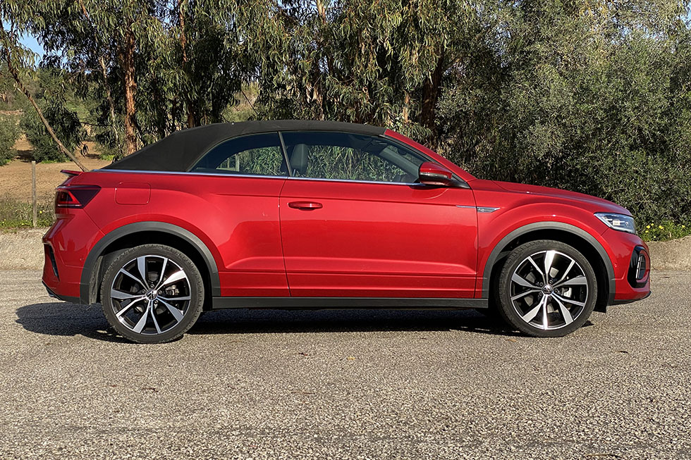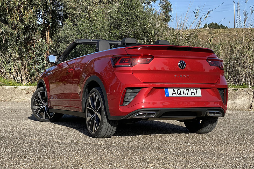 O visual mais desportivo é assegurado pelos pára-choques exclusivos da versão R-Line, mas também pelas jantes Misano de 19 polegadas presentes na unidade ensaiada. Em termos de desenho, as diferenças são mais que muitas, como não poderia deixar de ser. A altura mais elevada ao solo comprova a presença de um formato de SUV, capaz de se aventurar por caminhos menos próprios, mas a capota de lona e a ausência de um arco central, remete-nos para os verdadeiros descapotáveis de visual mais clássico, perfeitos para aproveitar todo e qualquer momento de exposição solar, especialmente quando a capota demora menos de 20 segundos a abrir ou a fechar e o processo pode ser feito até uma velocidade de 30 km/h.
