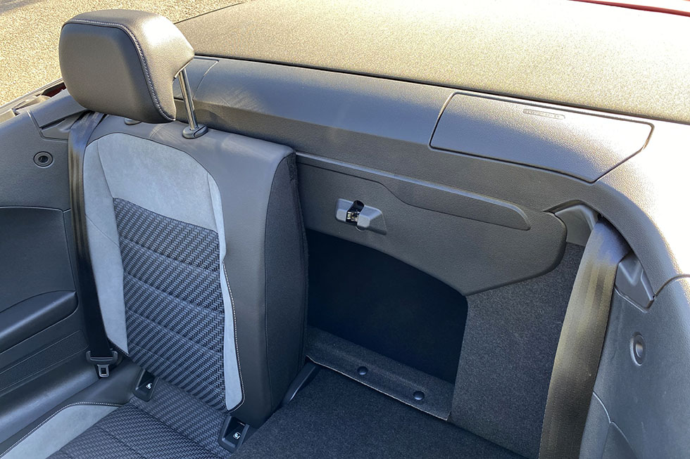 Em termos de espaço, os lugares traseiros não apresentam grandes dificuldades quando temos de transportar mais duas pessoas lá atrás. A bordo do Volkswagen T-ROC Cabrio estão disponíveis apenas quatro lugares, mas são lugares verdadeiros, capazes de serem utilizados por adultos e não apenas por crianças. O que saiu algo penalizado foi mesmo o formato da bagageira, que oferece agora uma capacidade de apenas 280 litros, ainda que haja a possibilidade de rebater os assentos traseiros para quando é necessário transportar objetos de maior dimensão, ainda que esta abertura seja apenas compatível com esquis ou uma prancha de snowboard e não com uma ida a uma conhecida loja de mobiliário.