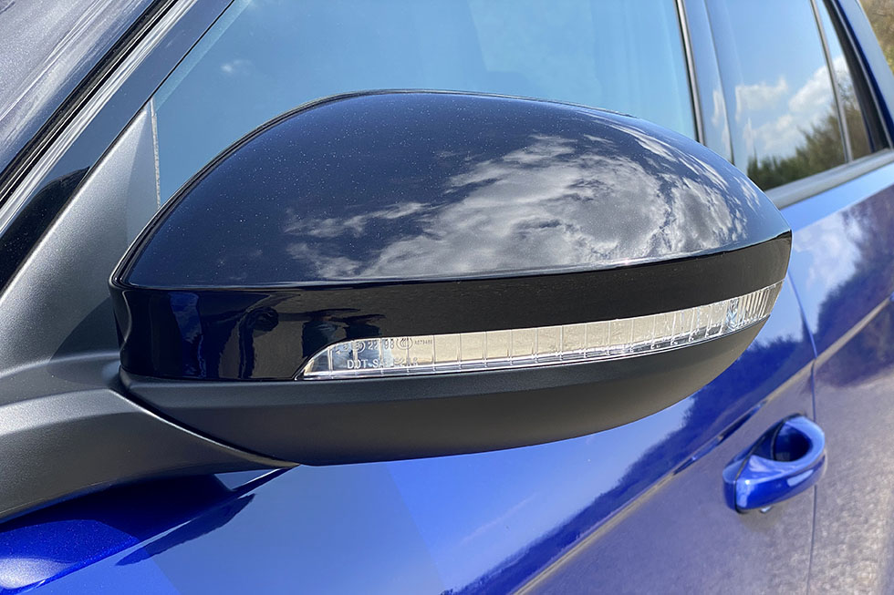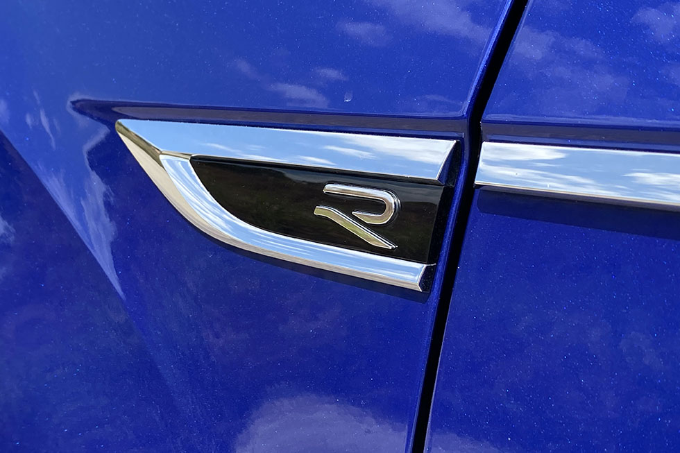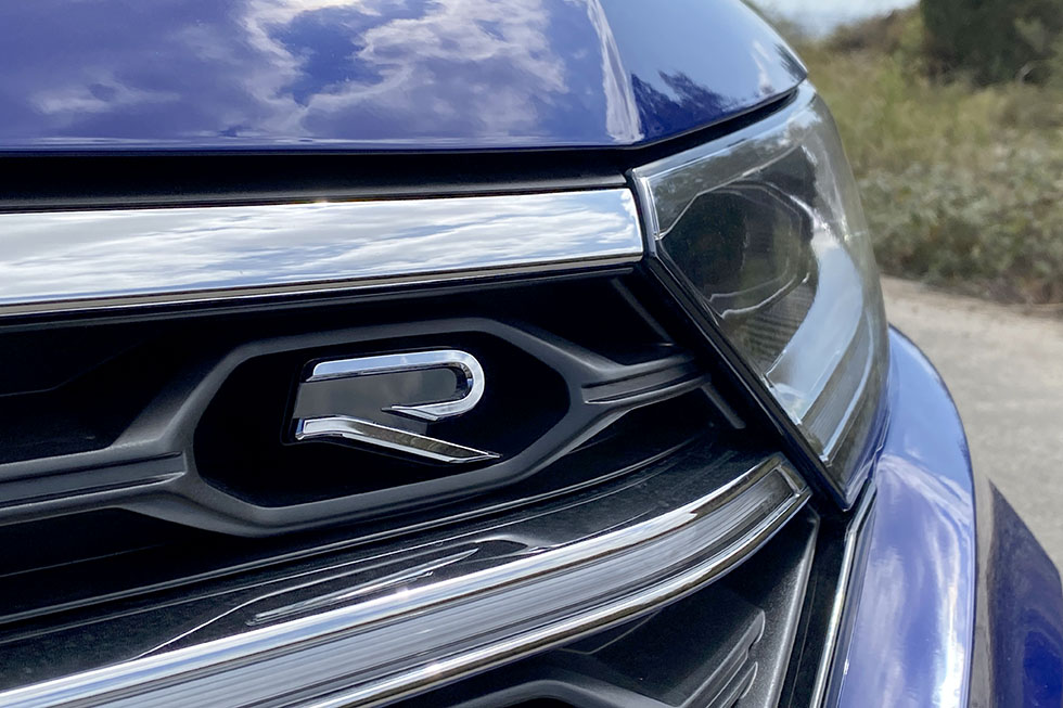Para quem não sabe, este é um Volkswagen T-ROC muito semelhante a tantos outros que encontramos por aí, neste mundo automóvel cada vez mais preenchido com SUV. Mas visto um pouco mais de perto, o elevado número de vezes que conseguimos descobrir a letra ‘R’, já nos dá uma pista de que versão se trata. No caso da unidade ensaiada, o tom Azul Lápis com o tejadilho em preto também dá uma ajuda, já para não falar na presença das jantes “Estoril” com 19 polegadas de diâmetro e nas quatro saídas de escape com o logo da Akrapovič na lateral. Outro dos pontos que nos consegue revelar que se trata da versão ‘R’ não se vê tão facilmente, mas como deixa a carroçaria 20 milímetros mais perto do piso, acaba por contribuir para o visual mais “musculado” do T-ROC. Claro que muitas destas coisas estão disponíveis apenas como opção, mas ajudam a criar a imagem de um modelo que passa o tempo a ser comparado com o Volkswagen Golf R, ainda que esteja direcionado para um público diferente.