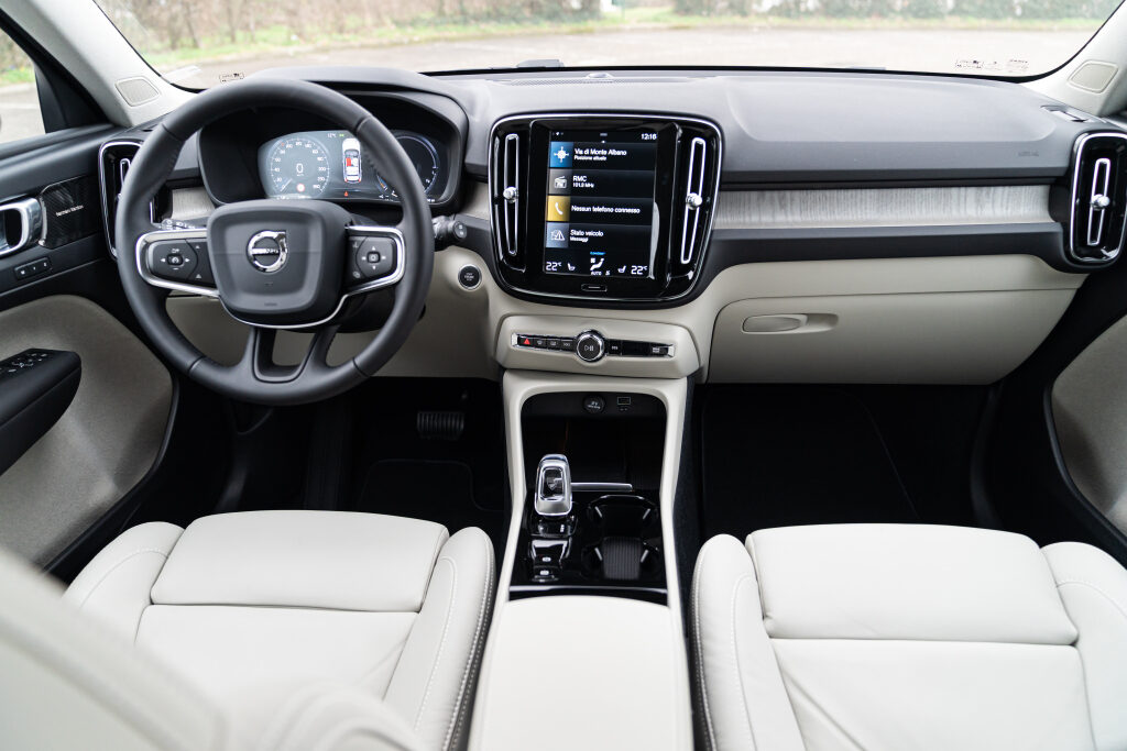 Ao volante (9/10) Longe de querer ser um SUV entusiasmante de conduzir, o XC40 proporciona, e muito, um prazer de condução diferente, focado numa experiência muito confortável e segura. A sensação de robustez ao rolar é uma constante e apesar do notório adornar de carroçaria nas curvas mais exigentes, revela sempre uma agilidade mais do que suficiente para que as descreva sem reações imprevisíveis e em plena segurança. O seu foco é, no entanto, o conforto, e nesse aspecto, o seu desempenho é muitíssimo bom. A posição de condução é muito boa e apenas a dimensão dos retrovisores exteriores pode impressionar nos primeiros quilómetros. A travagem é forte e segura, mas falta alguma progressividade e feedback no pedal, sensação causada pela regeneração de energia do grupo híbrido. Este XC40 permite igualmente, através do modo Charge, forçar o carregamento da bateria através do motor a gasolina ou, por oposição, através do modo “Hold” manter inalterado o nível da bateria para, por exemplo, reservar os quilómetros puramente elétricos disponíveis para serem utilizados em ambiente citadino.