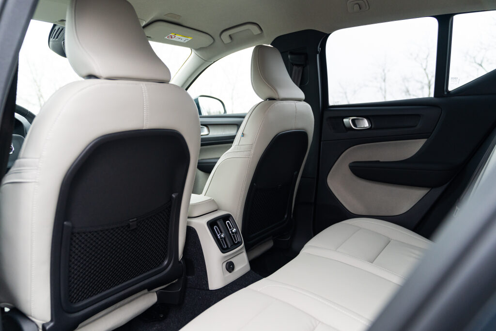 Interior (8/10) O estilo minimalista mas requintado do habitáculo de outros Volvo foi também adotado pelo XC40 e na nossa opinião, ainda bem que assim foi. À sensação global de qualidade, junta-se uma de grande conforto, graças ao bonito contraste de bons materiais e texturas, com iluminação ambiente que transforma uma viagem noturna numa experiência muito acolhedora. Já tudo foi dito sobre os bancos da Volvo, bonitos, confortáveis e desenvolvidos com a máxima proteção em mente, em caso de embate traseiro. No XC40 não são excepção já que condutor e passageiro vão muito bem sentados e ambos contam com regulações elétricas. Atrás, apesar do muito espaço disponível para pernas e cabeça – mesmo com a presença do teto panorâmico – as impressões são um pouco diferentes, já que quem lá viaja beneficiaria de um pouco mais de comprimento no assento, bem como de luz natural dos vidros laterais, neste caso compensada pela do teto em vidro.