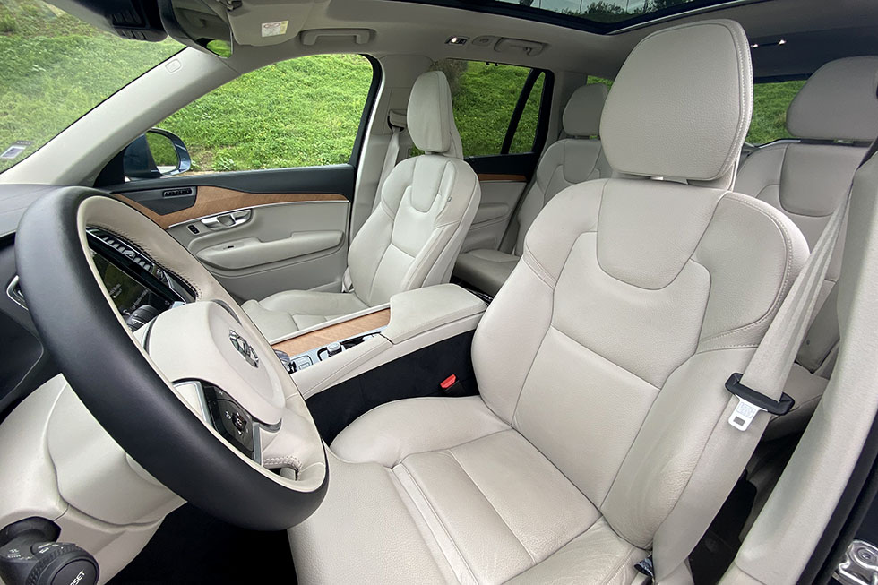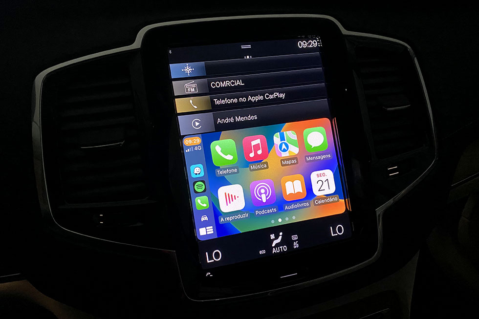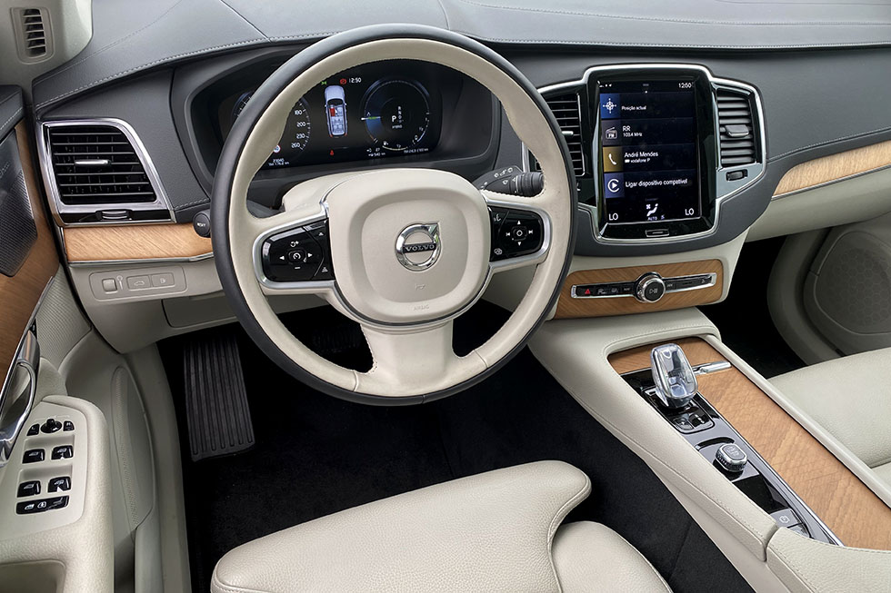O maior destaque ao volante do XC90, além da boa posição de condução, é mesmo o conforto. E no caso da unidade que conduzimos, a presença das jantes de 20 polegadas, mas um perfil 45 de pneu, ainda conseguem dissimular muitas das irregularidades do piso quando circulamos, por exemplo, nas zonas mais antigas da cidade, em que as ruas de empedrado são muito mais frequentes. Há momentos em que os quase cinco metros de comprimento e dois de largura não simplificam as manobras mais citadinas, principalmente quando temos de utilizar alguns dos estacionamentos em parques públicos. Mas na realidade, o que nos importa mesmo é a qualidade do ambiente a bordo e não o que se passa “lá fora”.